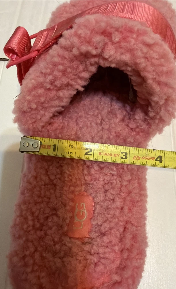 Customized: No Outsole Material: Molded Eva Style: Platform Color: Pink Toe Shape: Open Toe Fabric Type: Shearling Upper Material: Fur Vintage: No US Shoe Size: 10.5 Insole Material: Wool EU Shoe Size: 41 Accents: Logo Features: Comfort, Cushioned, Breathable Closure: Slip On Pattern: Solid AU Shoe Size: 10.5 Lining Material: Sheepskin Heel Height: Mid (2-2.9 in) Season: Fall, Spring, Summer, Winter Theme: Australia Character: NA Type: Slipper Brand: UGG Product Line: Ugg Classic Model: Fluffita Occasion: Casual, Travel Department: Women