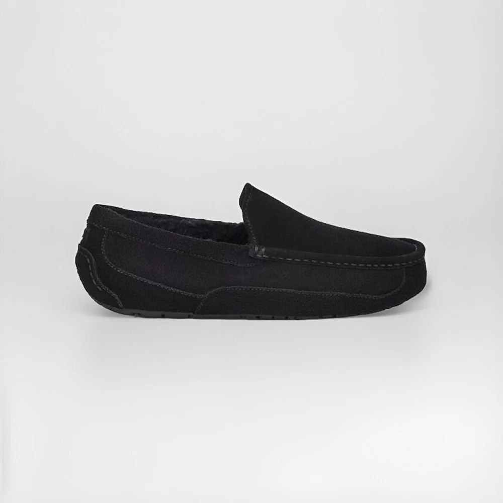 Elevate your casual wear with these UGG Ascot slippers. The slip-on style and solid black color make them a versatile addition to your shoe collection. The suede upper material and sheepskin lining material provide warmth and comfort, while the rubber outsole material ensures durability. Perfect for winter, fall, and spring, these slippers are suitable for travel, activewear, and casual occasions. The wool insole material adds an extra layer of warmth and comfort. The UGG brand is known for its quality and style, and these slippers are no exception. Available in UK shoe size 9 and US shoe size 10, these slippers are a must-have for any shoe lover.