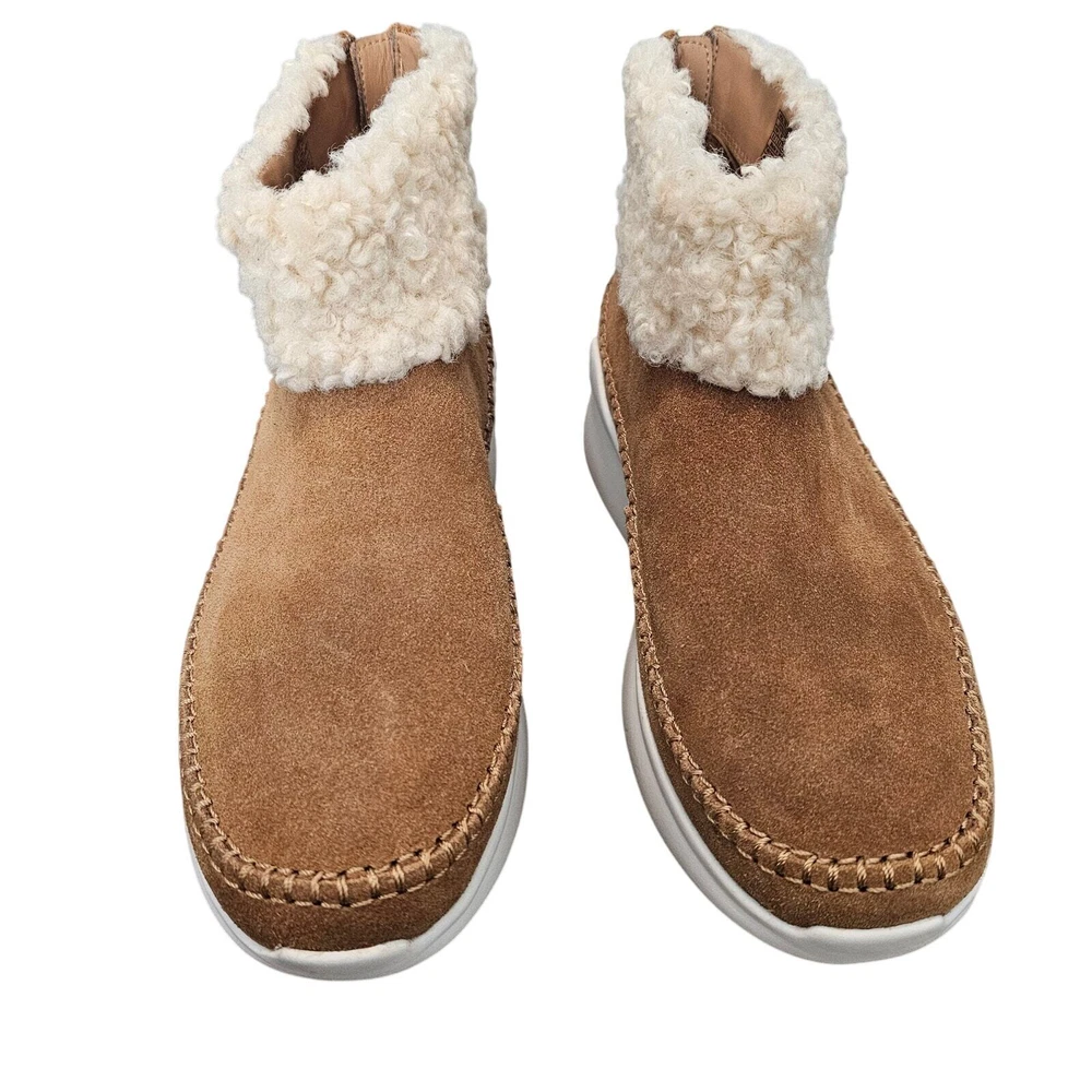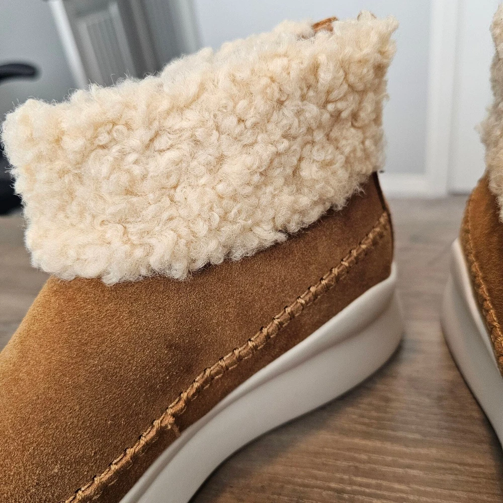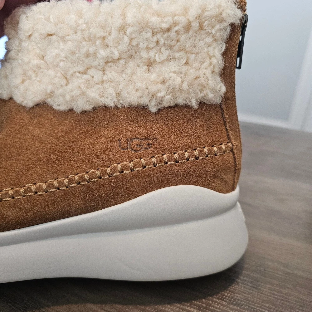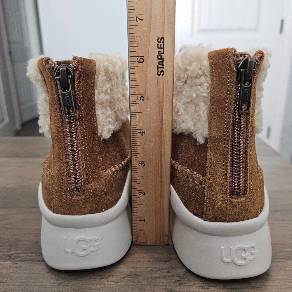 UGG Montrose Sneaker Chestnut Boots Womens Size 8.5 Brown Chunky Y2K Warm New without tags! The shoe is grounded by a Treadlite by UGG™ sole for enhanced cushioning, traction and durability. -Toe: Round toe -Closure: Zipper -Length: ankle -Color/design: Brown and White 1 1/2" heel; 3/4" platform 6" shaft Leather and UGGpure wool textile upper and lining/synthetic sole -Warm, cozy, soft, winter, casual, neutral Measurements in photos. Same day / next day shipping Offers accepted Like for price drops and deals Bundle 2 items or more and save! Thank you! 1lb 6oz