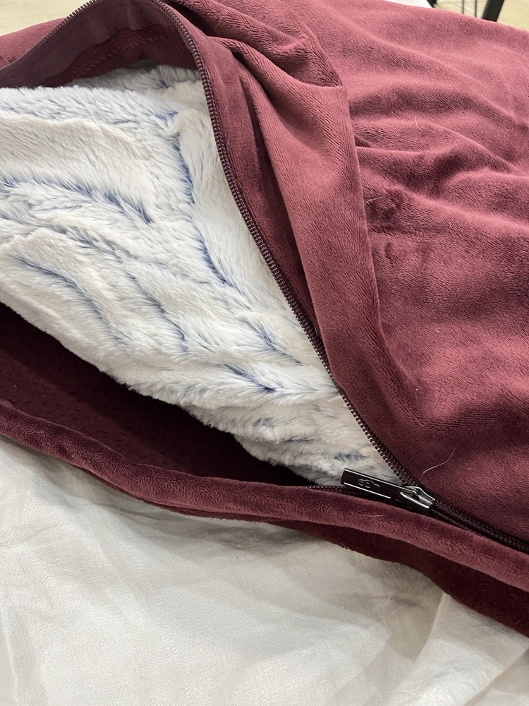 UGG body pillow. Excellent condition. Purple soft velour sham with memory foam pillow. 53” long 21” wide. Sham is removable and has a zipper closure.
