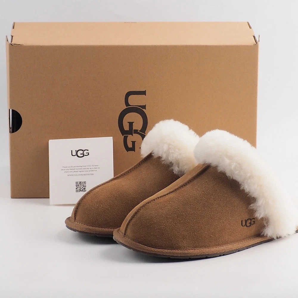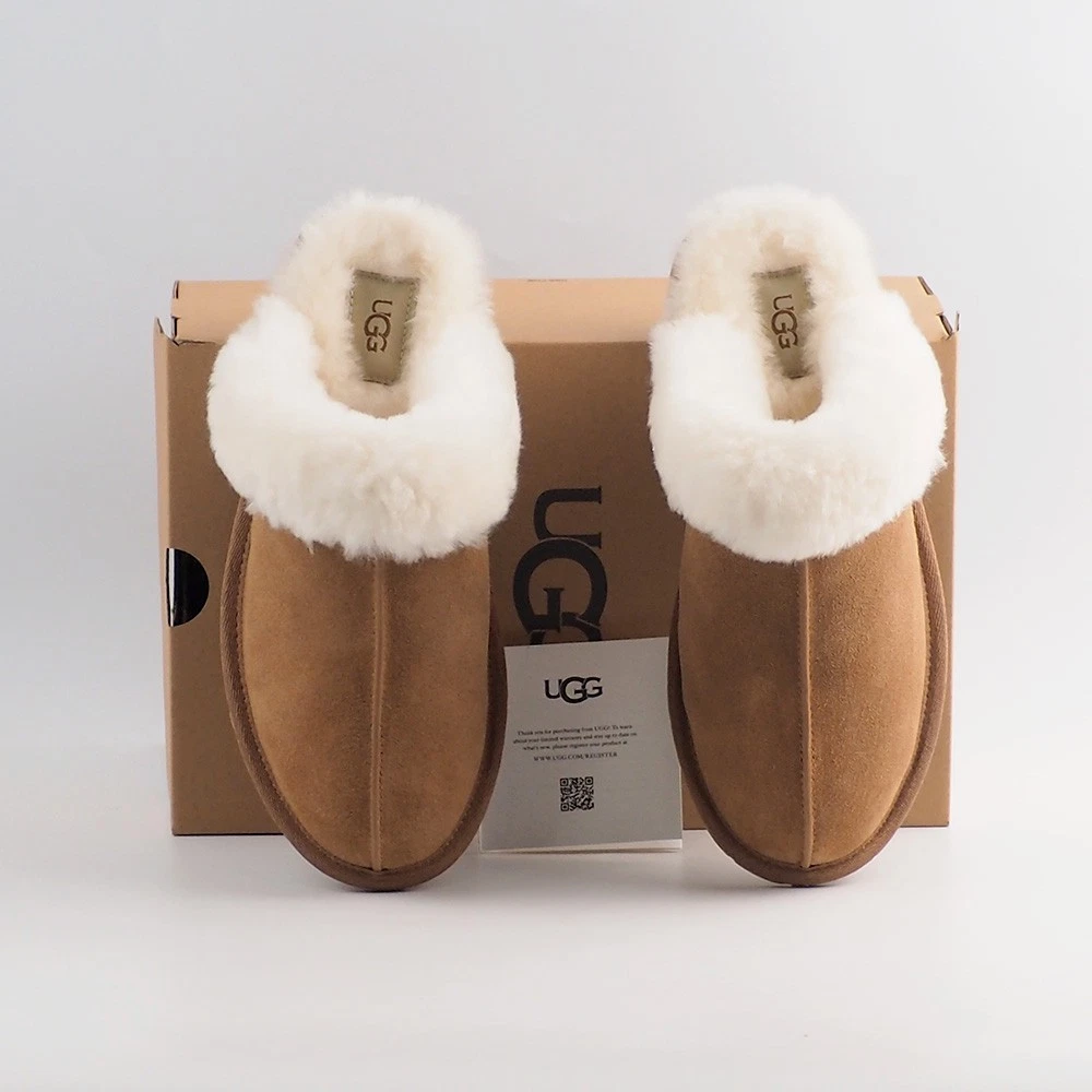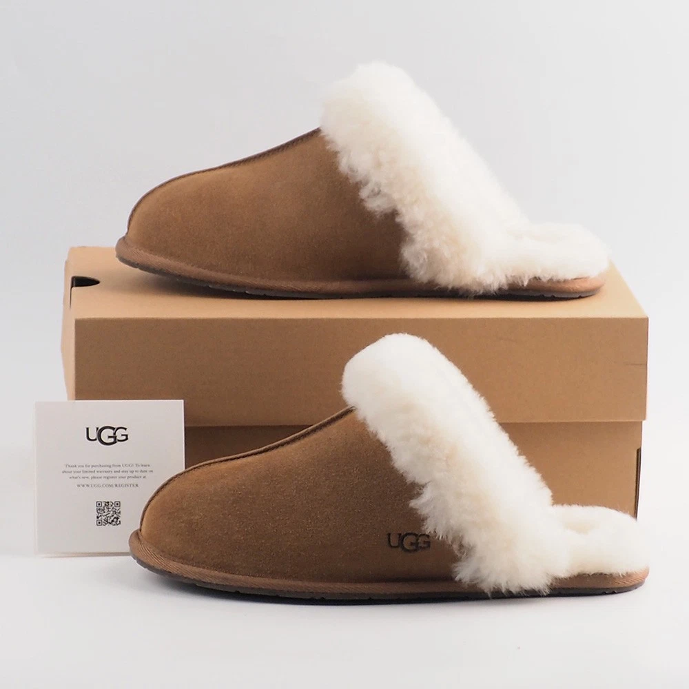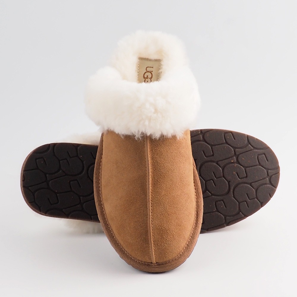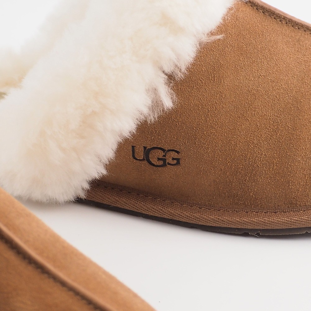Product Information The Scuffette pulls together any loungewear look with a suede upper and sheepskin collar. Step in and it only gets better with fully lined sheepskin inside. Suede upper Sheepskin collar 17mm sheepskin lining 17mm sheepskin insole Molded rubber outsole Polyester binding or textile binding made from 100% recycled polyester fibers The UGG® Logo, heat-embossed, Woven label with The UGG® Logo on insole This product contains real fur from sheep or lamb. Fur may be sourced from Australia, Ireland, the United Kingdom, or the United States. It has been artificially dyed and treated. Customer service support We offer a 30-day return and refund policy. Exchanges are accepted. If you haven't received your item or the tracking information is not updated, please contact us first. We will handle the issue within 24 hours and provide you with satisfactory service. Thank you!