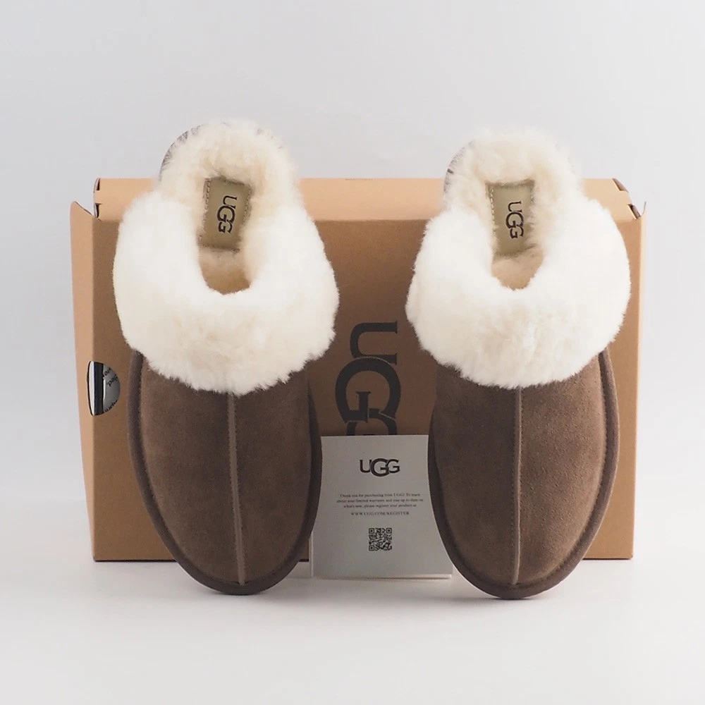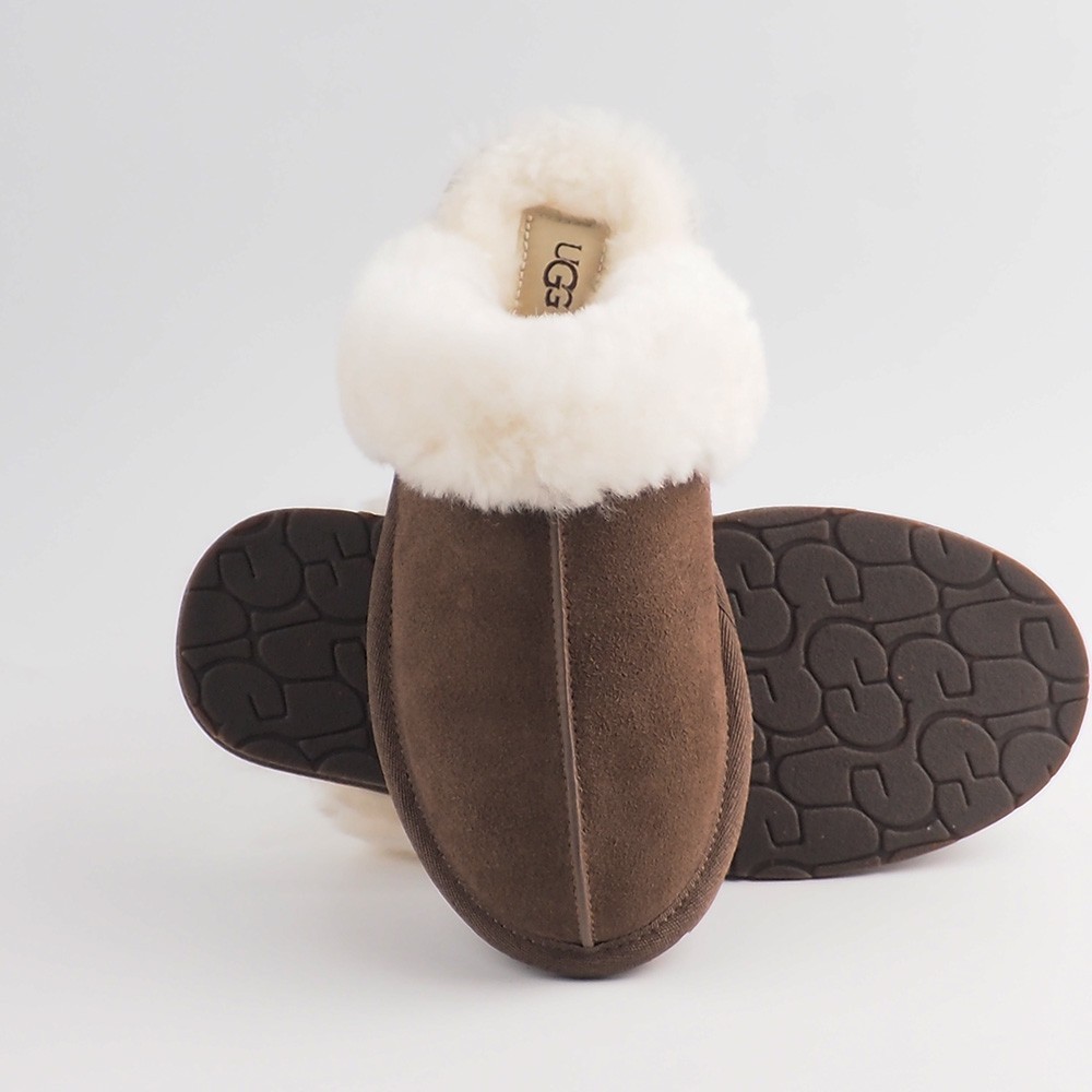 Product Information The Scuffette pulls together any loungewear look with a suede upper and sheepskin collar. Step in and it only gets better with fully lined sheepskin inside. Suede upper Sheepskin collar 17mm sheepskin lining 17mm sheepskin insole Molded rubber outsole Polyester binding or textile binding made from 100% recycled polyester fibers The UGG® Logo, heat-embossed, Woven label with The UGG® Logo on insole This product contains real fur from sheep or lamb. Fur may be sourced from Australia, Ireland, the United Kingdom, or the United States. It has been artificially dyed and treated. Customer service support We offer a 30-day return and refund policy. Exchanges are accepted. If you haven't received your item or the tracking information is not updated, please contact us first. We will handle the issue within 24 hours and provide you with satisfactory service. Thank you!