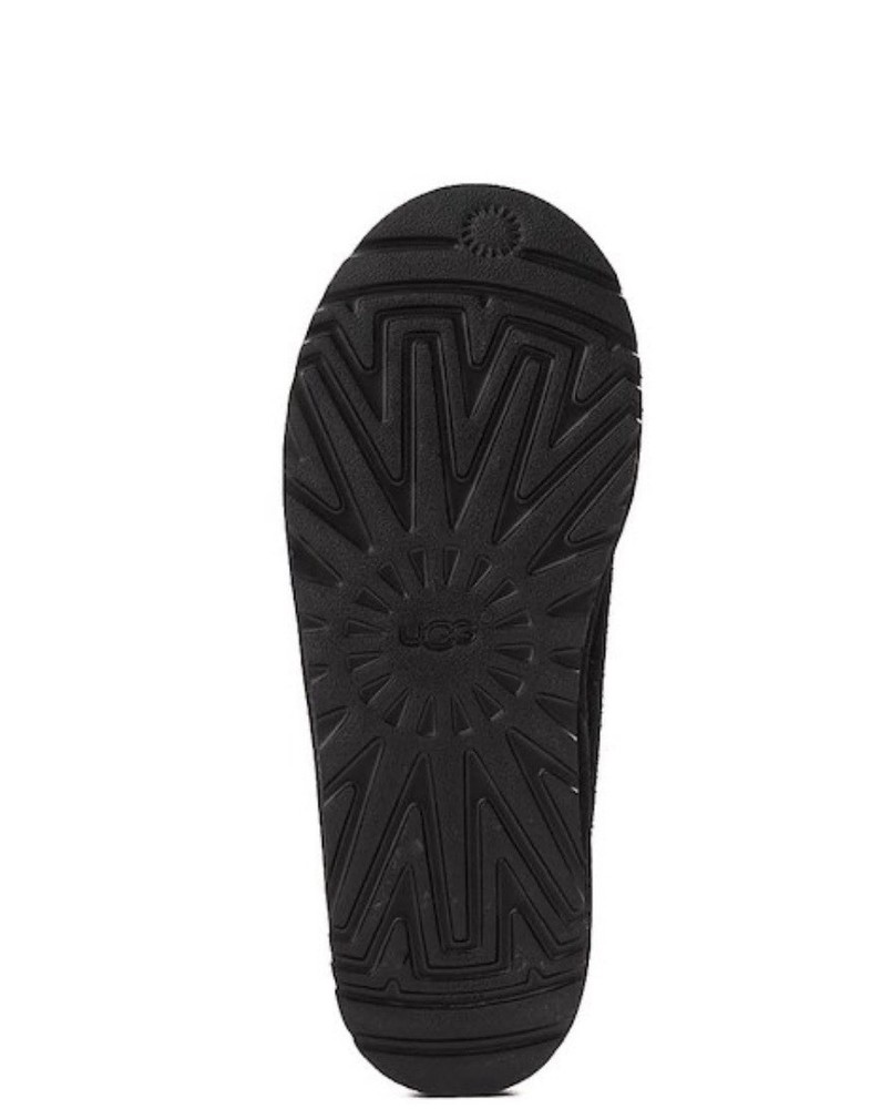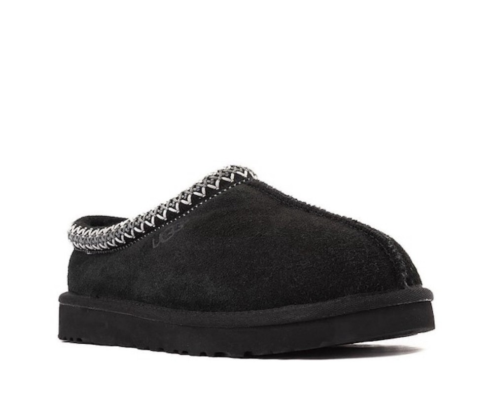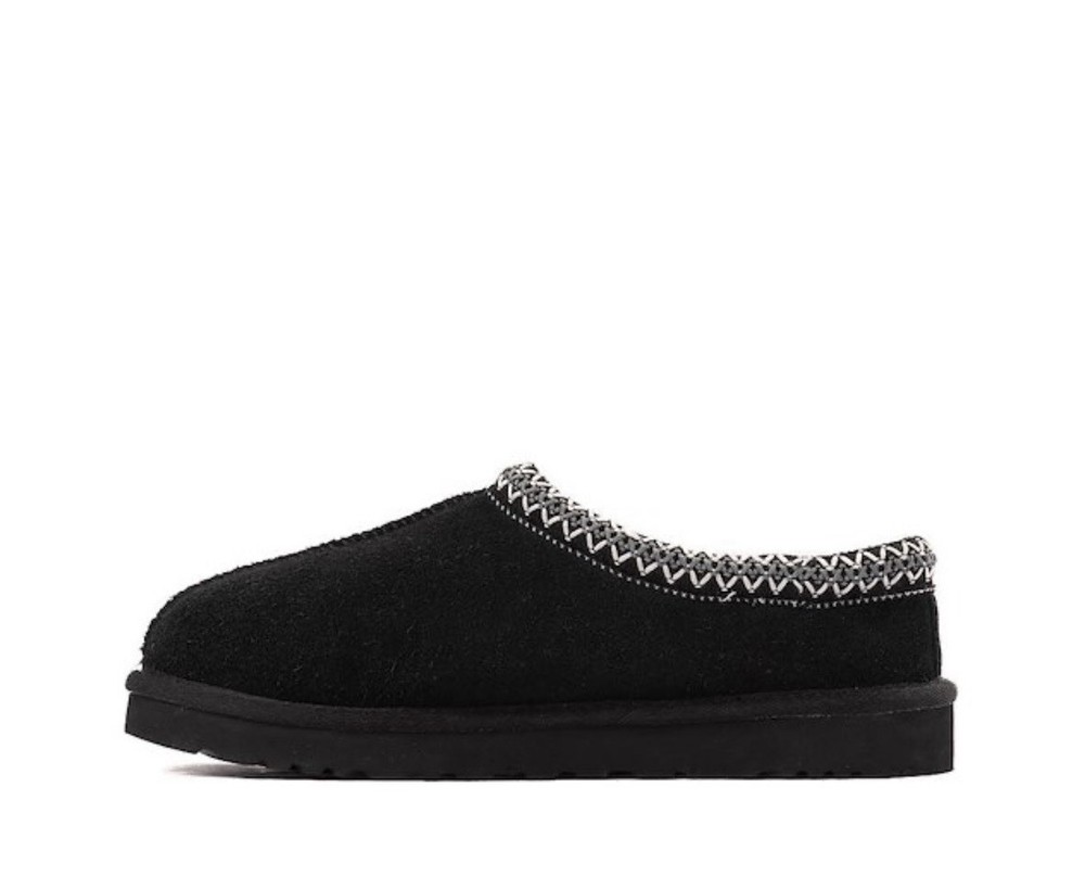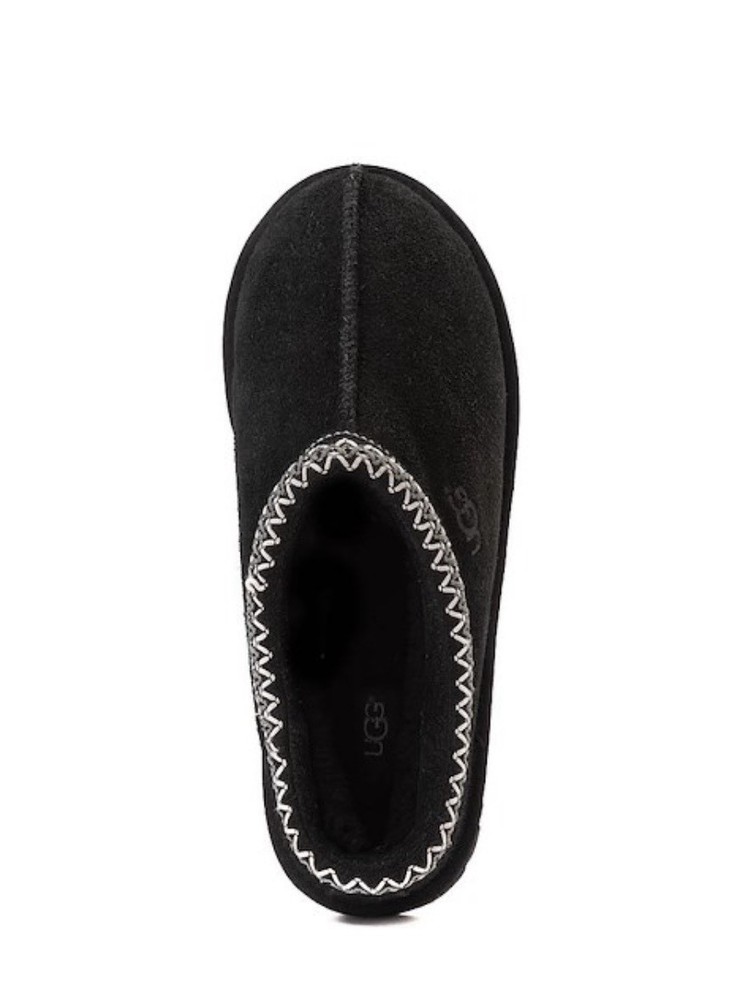 Fabric Type: Shearling Lining Material: Sheepskin Heel Height: Flat (Under 1 in) Product Line: Ugg Classic Theme: Classic Style: Slip-On Outsole Material: Rubber Color: Black Occasion: Casual Season: Winter, Fall Department: Women Closure: Slip On Brand: UGG Pattern: Solid Toe Shape: Round Toe US Shoe Size: 7 Upper Material: Suede Model: Tasman Accents: Embroidered Type: Slipper Features: Lined, Comfort