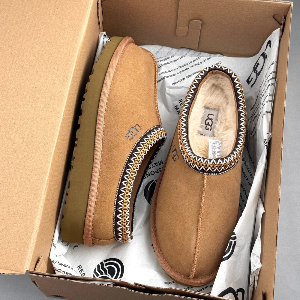 Women's Shoes US 6 - EU 37 - 230MM -(Heel-Toe 9.06IN) US 7 - EU 38 - 240MM -(Heel-Toe 9.45IN) US 8 - EU 39 - 250MM -(Heel-Toe 9.84IN) US 9 - EU 40 - 260MM -(Heel-Toe 10.24IN) US 10 - EU 41 - 270MM -(Heel-Toe 10.63IN) US 11 - EU 42 - 280MM -(Heel-Toe 11.02IN) Details Suede upper built to last, perfect for indoor/outdoor flex Sugarcane EVA footbed for cushioned, eco-friendly support Recycled polyester accents keep it green Genuine, ethically sourced sheepskin fur for luxe feel Heat-embossed UGG® logo and woven insole label for authentic cred Classic comfort meets modern style and sustainability—ready to slide into your rotation. Suede upper UGGbraid made with 100% recycled polyester fibers 17mm sheepskin vamp lining 17mm sheepskin insole Sugarcane EVA outsole Textile binding made from 100% recycled polyester fibers The UGG® Logo, heat-embossed, Woven label with The UGG® Logo on insole RN 88276 This product contains real fur from sheep or lamb. Fur may be sourced from Australia, Ireland, the United Kingdom, or the United States. It has been artificially dyed and treated.