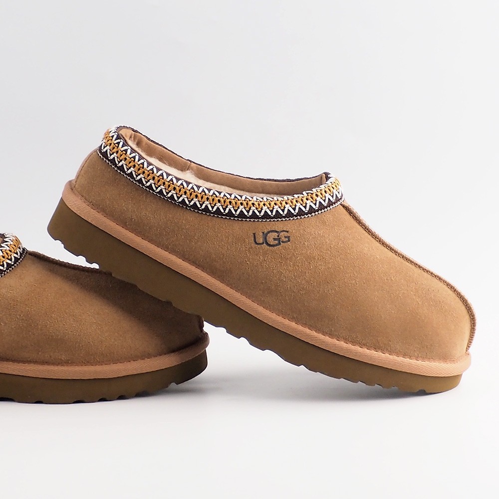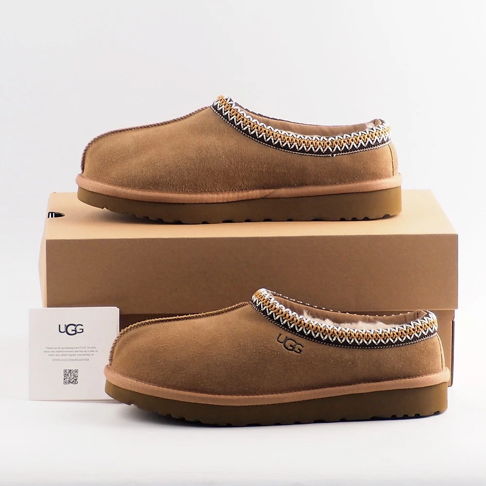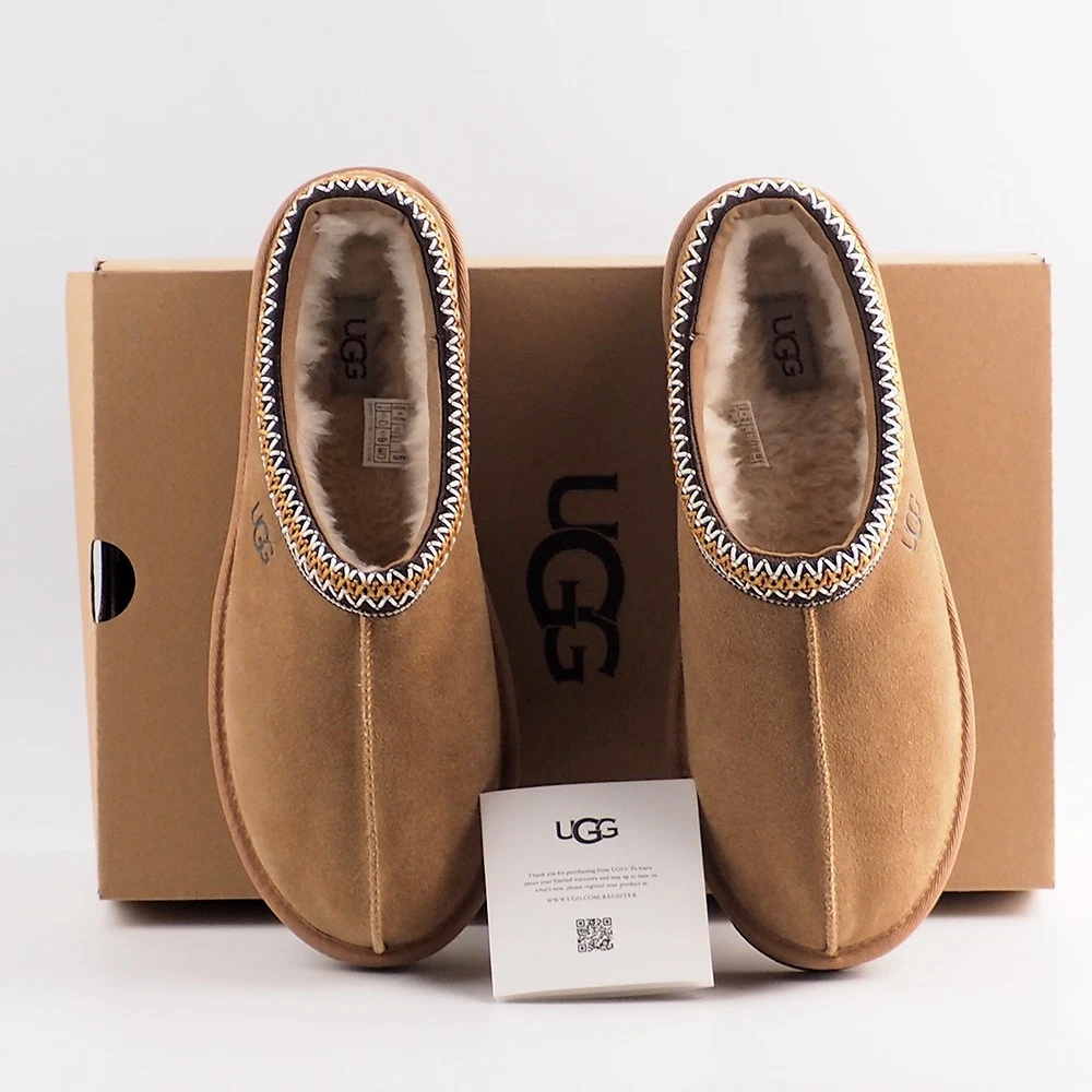 Product Information The chestnut UGG Tasman II slipper is a cosy season essential! Perfect for those chilly days with a 17mm sheepskin lining and insole. The premium suede uppers feature iconic braid detailing, while the EVA sole offers indoor or outdoor styling. Suede upper UGGbraid made with 100% recycled polyester fibers 17mm sheepskin vamp lining 17mm sheepskin insole Sugarcane EVA outsole Textile binding made from 100% recycled polyester fibers The UGG® Logo, heat-embossed, Woven label with The UGG® Logo on insole This product contains real fur from sheep or lamb. Fur may be sourced from Australia, Ireland, the United Kingdom, or the United States. It has been artificially dyed and treated. Customer service support We offer a 30-day return and refund policy. Exchanges are accepted. If you haven't received your item or the tracking information is not updated, please contact us first. We will handle the issue within 24 hours and provide you with satisfactory service. Thank you!