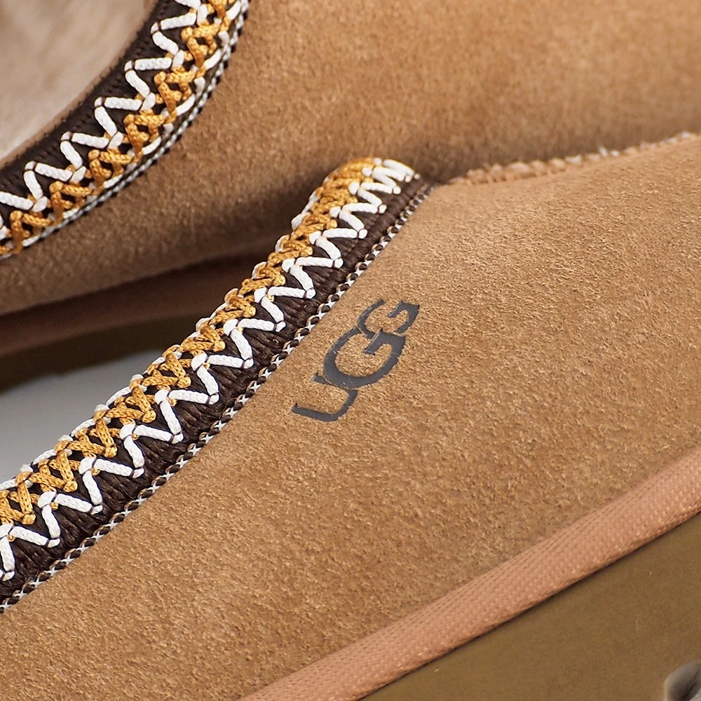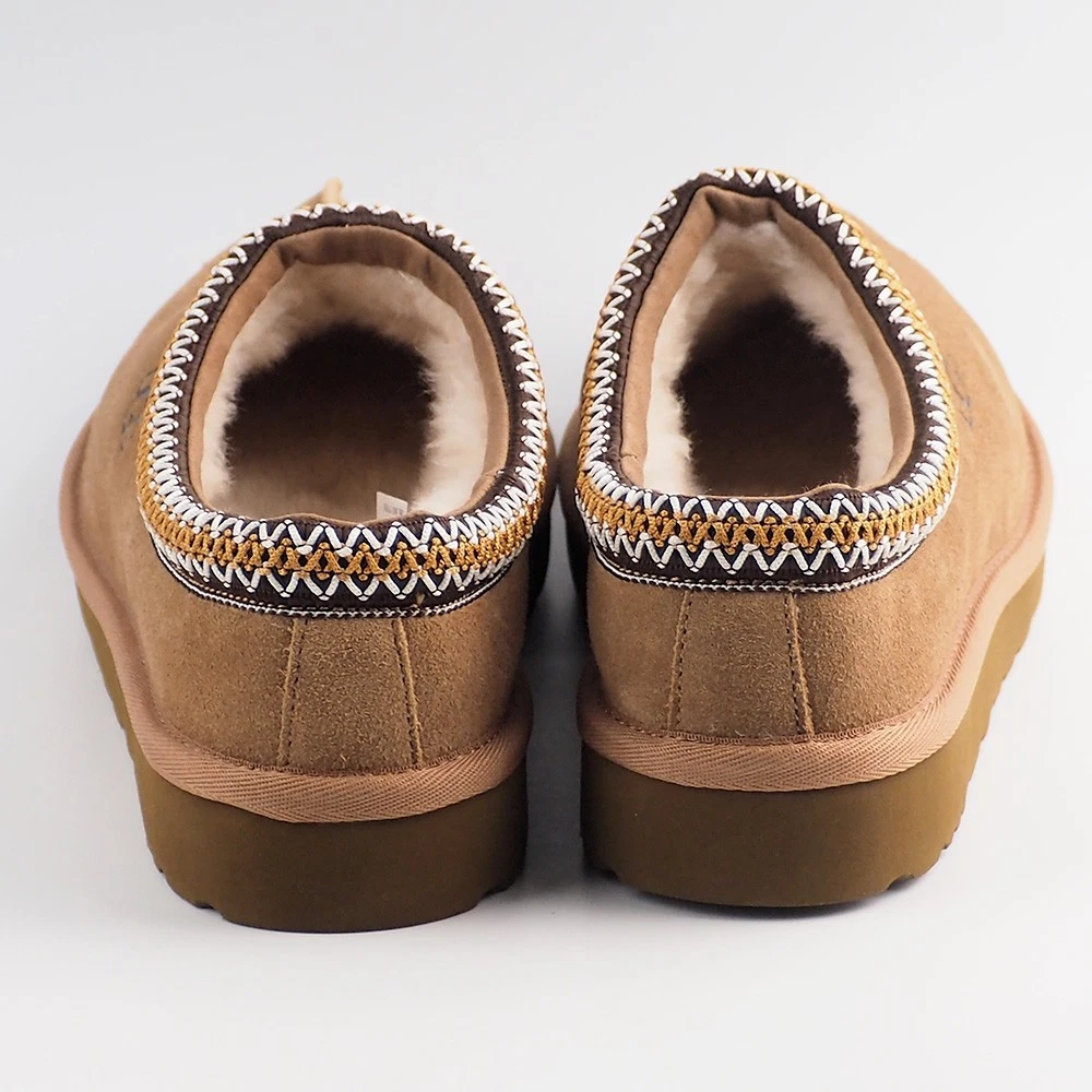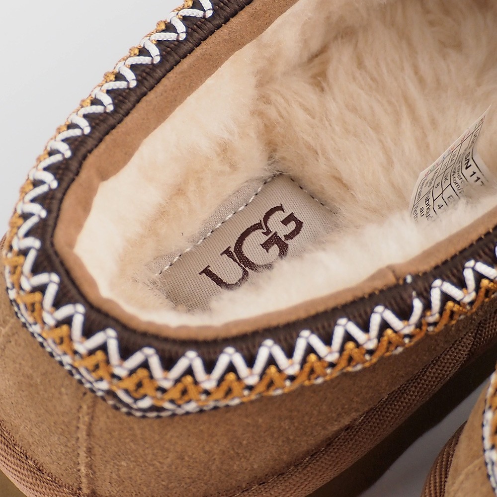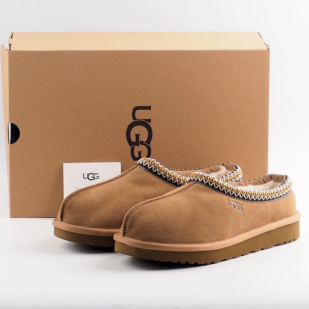 Product Information The chestnut UGG Tasman II slipper is a cosy season essential! Perfect for those chilly days with a 17mm sheepskin lining and insole. The premium suede uppers feature iconic braid detailing, while the EVA sole offers indoor or outdoor styling. Suede upper UGGbraid made with 100% recycled polyester fibers 17mm sheepskin vamp lining 17mm sheepskin insole Sugarcane EVA outsole Textile binding made from 100% recycled polyester fibers The UGG® Logo, heat-embossed, Woven label with The UGG® Logo on insole This product contains real fur from sheep or lamb. Fur may be sourced from Australia, Ireland, the United Kingdom, or the United States. It has been artificially dyed and treated. Customer service support We offer a 30-day return and refund policy. Exchanges are accepted. If you haven't received your item or the tracking information is not updated, please contact us first. We will handle the issue within 24 hours and provide you with satisfactory service. Thank you!