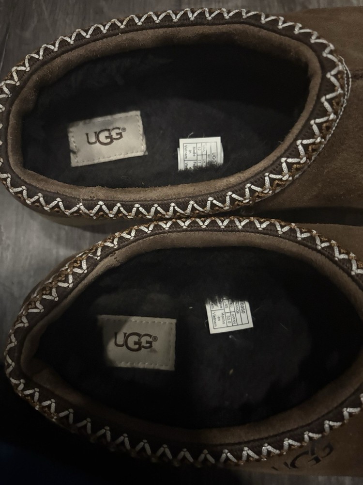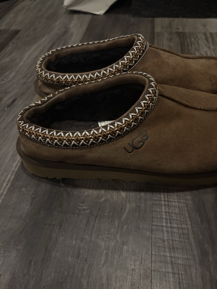 The UGG Tasman Slipper in size 12 for men is a stylish and comfortable option for casual wear during the winter, fall, and spring seasons. Made with brown suede and featuring a slip-on closure, these slippers are perfect for lounging around the house or running quick errands. The shearling fabric lining provides warmth and coziness, making them a great choice for practical yet fashionable footwear. The authentic UGG brand ensures high quality and durability in these classic slipper style shoes.