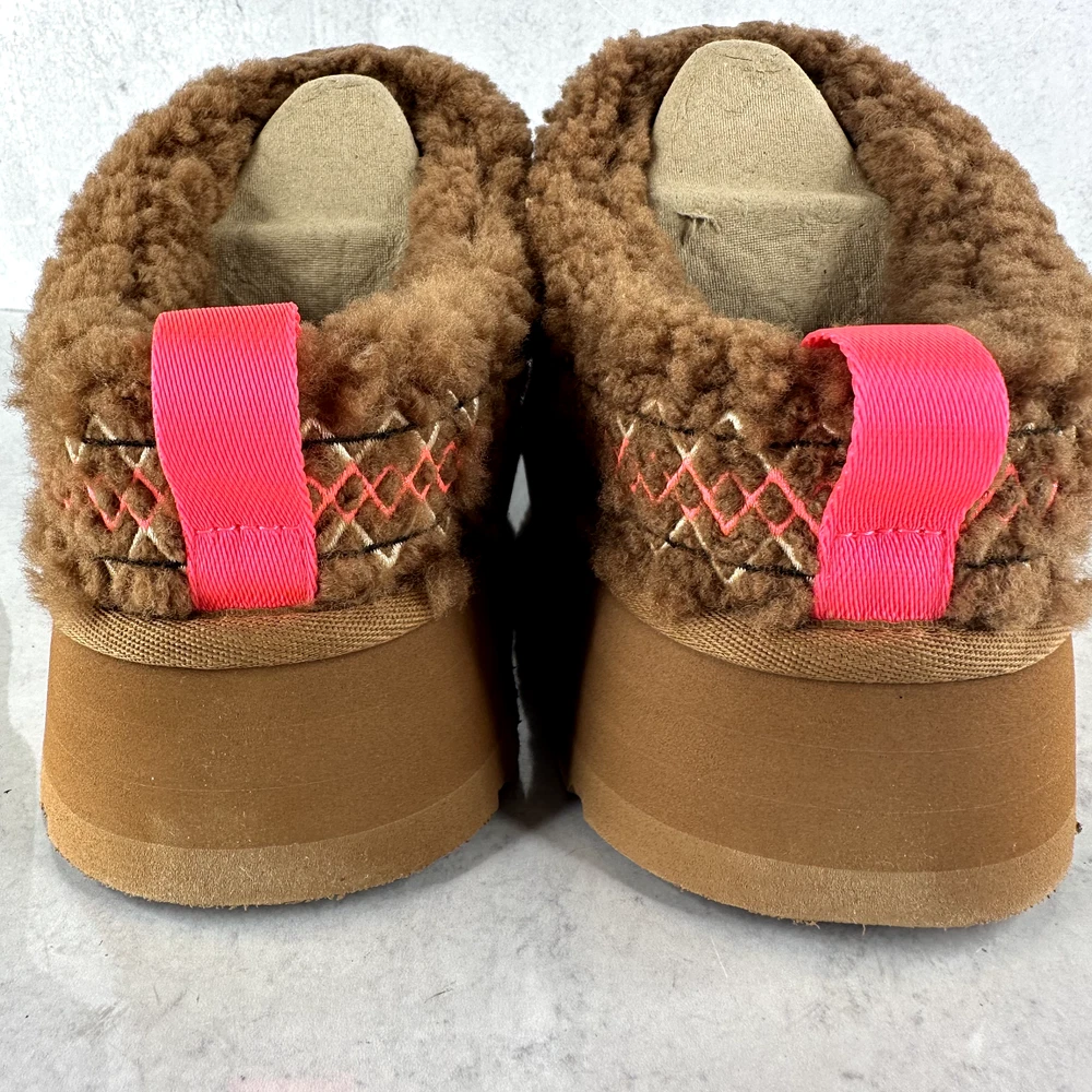 UGG Tazz Braid Slippers Platform Women's 12 Brown Hardwood Shoes