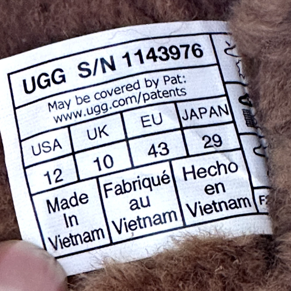 Department: Women Outsole Material: Rubber US Shoe Size: 12 Personalize: No EU Shoe Size: 43 Type: Slipper UK Shoe Size: 10 Accents: Logo Pattern: Solid Features: Comfort, Lined Model: Ugg Tazz Handmade: No Color: Brown Customized: No Lining Material: Fabric Upper Material: Wool Occasion: Casual, Travel Insole Material: Fabric Style: Platform Toe Shape: Round Toe Country/Region of Manufacture: Vietnam Closure: Slip On Brand: UGG Vintage: No Seller Notes: “New without original box.”