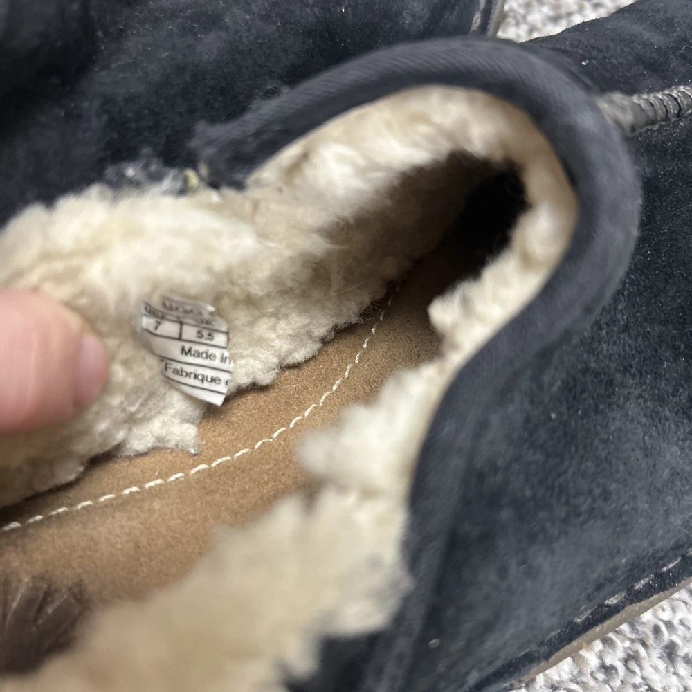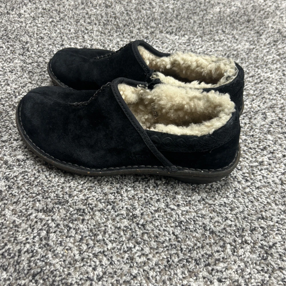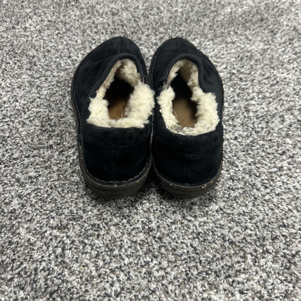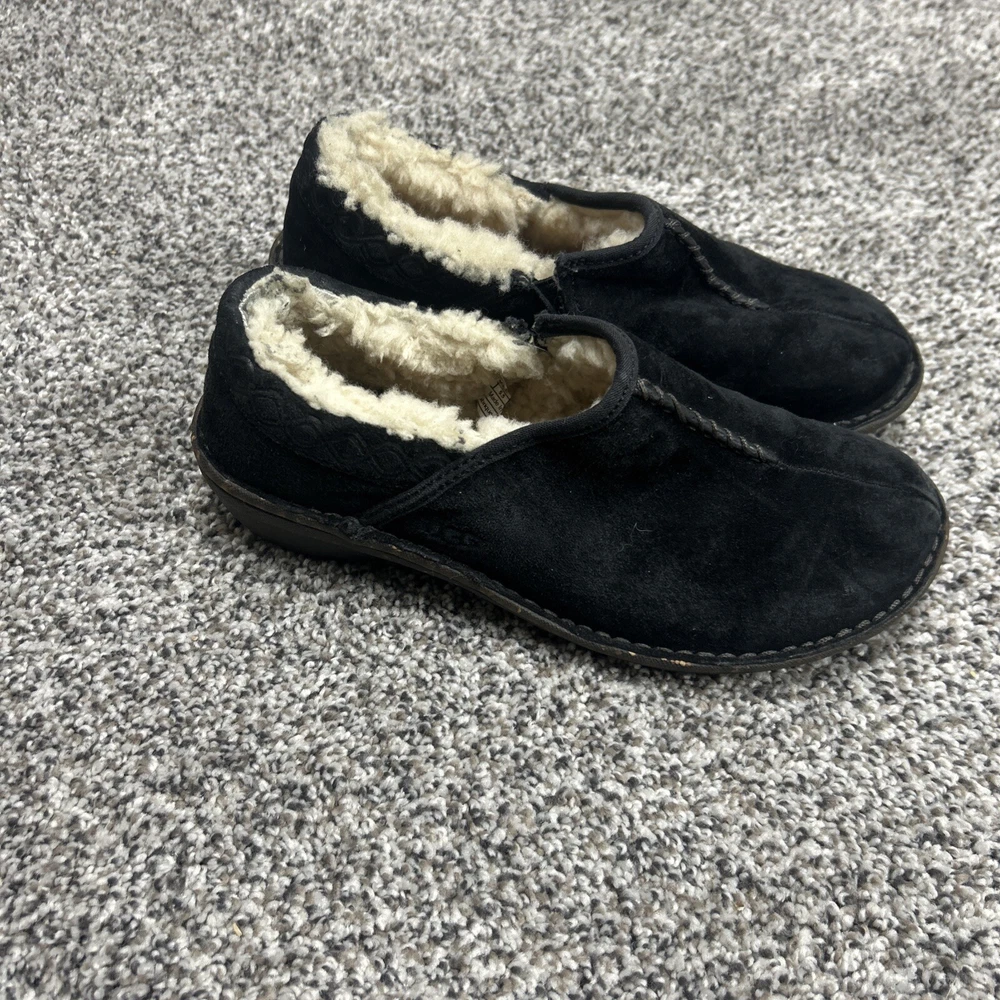 UGG Womens Bettey Suede Slip On Mocassin Shoes In Black Sherpa Clogs Size 7
