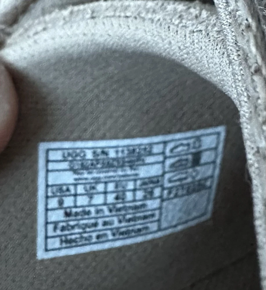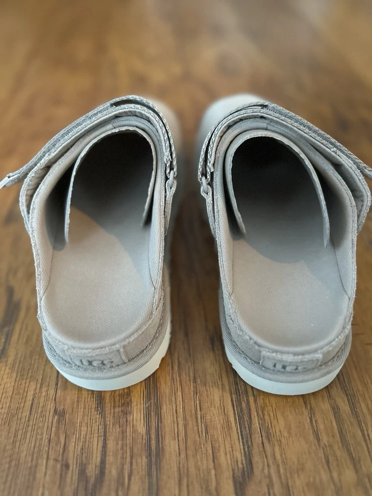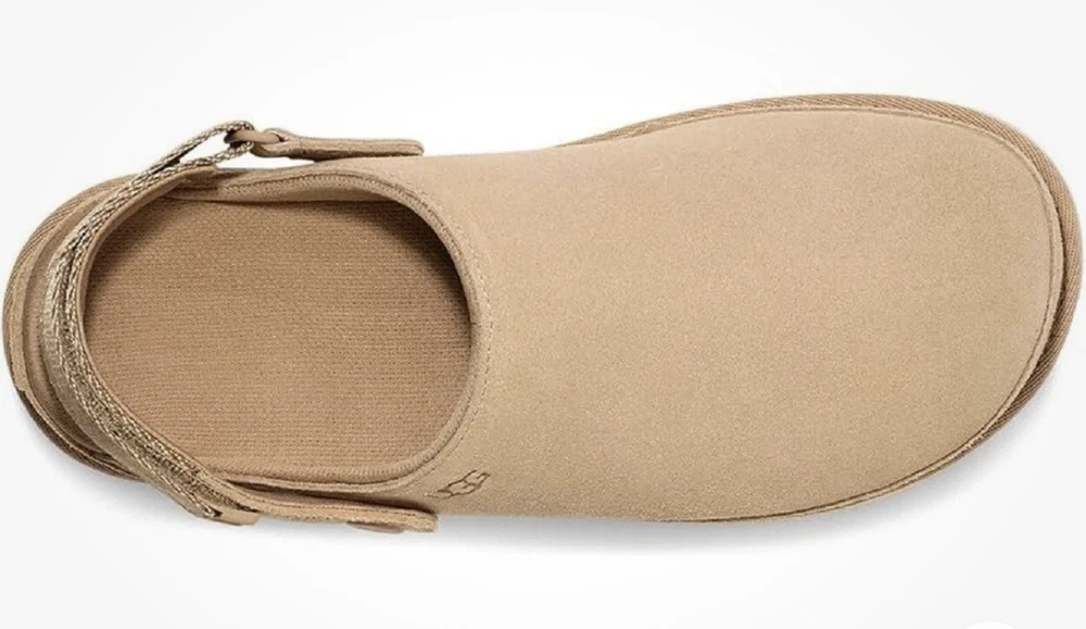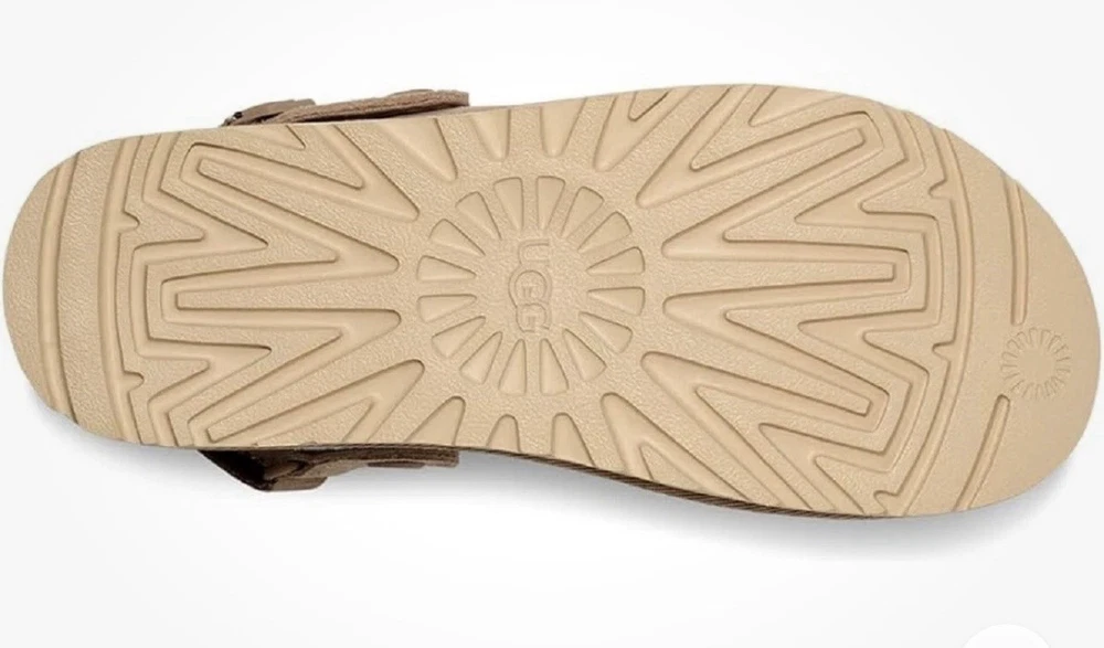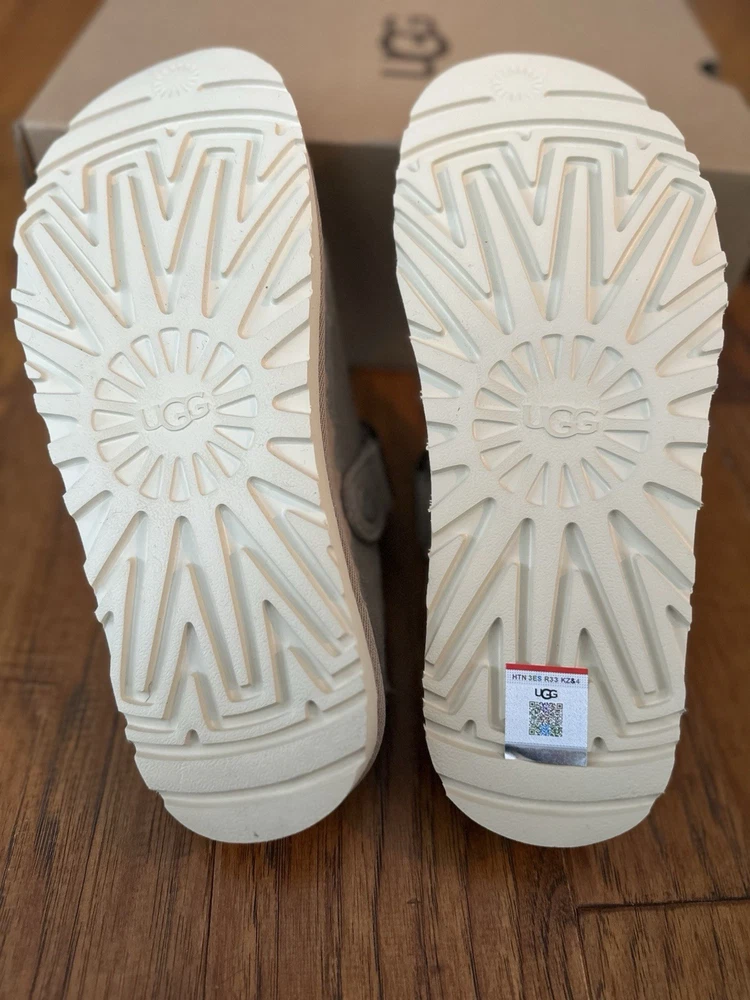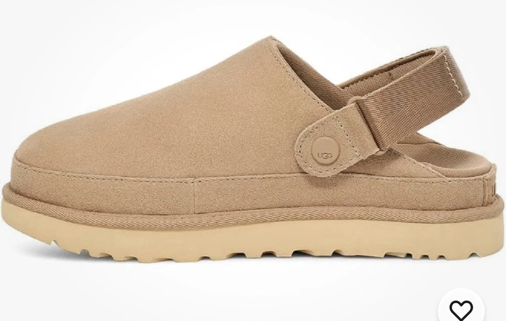 New with box! The UGG Women's Goldenstar Clog Slippers in sand color, size 9, are a stylish and comfortable choice for women looking for a cozy yet fashionable slipper. These clog-style slippers feature a beige color that adds a touch of elegance to the overall look. With the UGG brand known for its high-quality footwear, these slippers are sure to provide both comfort and style for any woman's wardrobe.