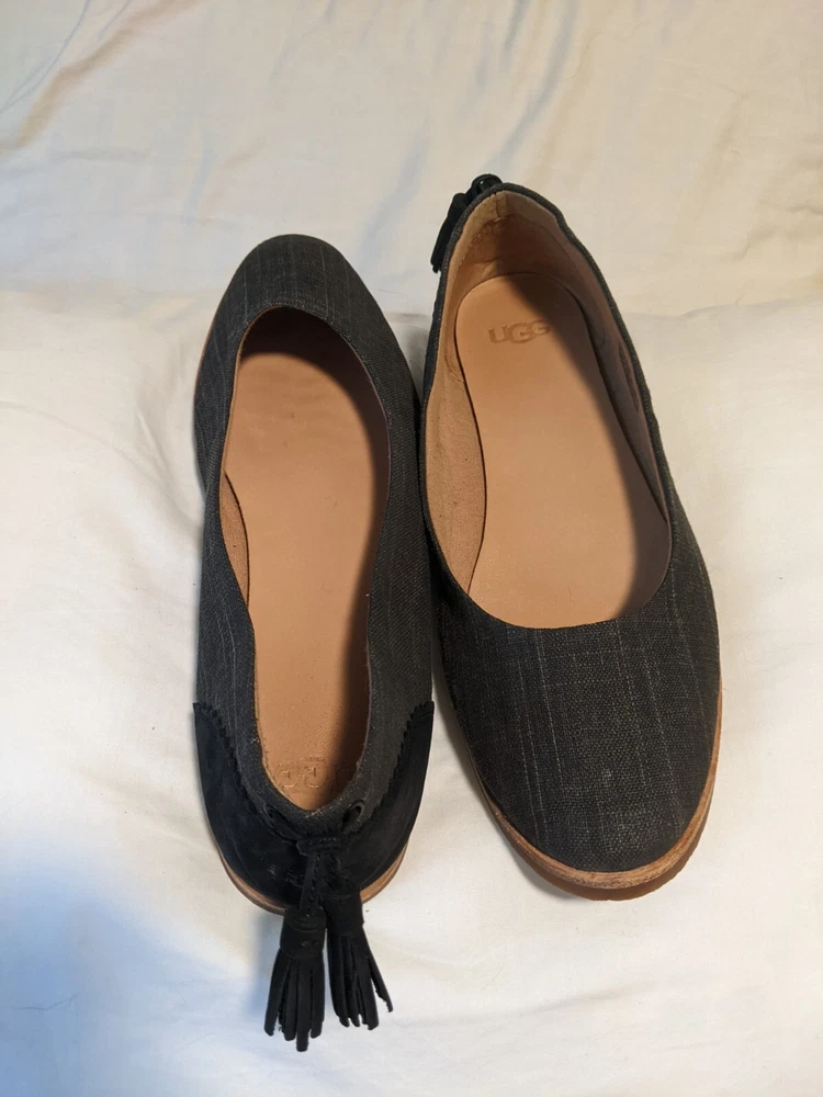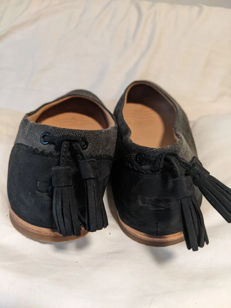 UGG Women's Mesa Grey Tassel Round Toe Slip On Ballet Flats Size 9.5. Condition is Pre-owned. Shipped with USPS Priority Mail.