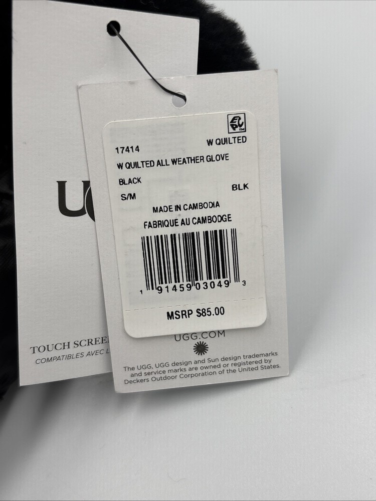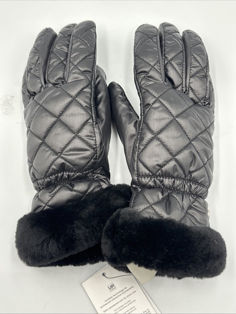 UGG women’s quilted all weather gloves in black, size Small/Medium. These gloves are New With Tags (NWT) and include the original retail tag with an MSRP of $85. Designed for cold-weather comfort, featuring a stylish quilted exterior and a soft fur cuff for added warmth and luxury. Perfect for everyday winter wear, outdoor activities, or as a gift. Please review photos for exact condition and details. Condition New With Tags (NWT) Specifications Brand: UGG Type: All Weather Gloves Size: Women’s S/M Color: Black Style: Quilted Gloves with Fur Cuff Model Number: 17414 MSRP: $85 (shown on tag) Compatibility Not applicable Features Quilted design for style and warmth Soft fur cuff for added comfort All weather construction for winter use Brand new with original tags attached Shipping Ships within 2 business days Notes New with tags, unused MSRP $85 shown on tag Great for cold weather or gifting See photos for exact condition and details