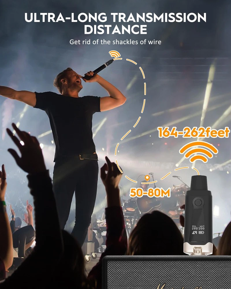Store New Arrivals Add to Favorite View Feedback Contact UHF Wireless XLR Transmitter and Receiver, XLR Microphone Adapter 16 Channels, Wireless Mic Adapter with 48V Phantom Power for Dynamic Mic, Condenser Mic, Audio Mixer, Electric Guitar Bass, M2 Description Item model number M2 Power Source Battery Powered Product Dimensions 7.28 x 6.3 x 1.57 inches Country of Origin China Compatible Devices Wireless Microphone Connector Type USB Item Weight 13.4 ounces Color Name Rose Gold Is Discontinued By Manufacturer No Support 48V Phantom Power Supply: Cannot be used with high capacitance microphones, such as Behringer BA 19A. Turn off the phantom power switch, the M2 audio transmitter and receiver can be used to connect dynamic microphones. Turn on the phantom power switch, M2 can be used to connect a condenser mic. Normal working hours are 6-8 hours. Ultra Long Distance Transmission: UHF band is optimal for microphone wireless, solid RF connection over a 164 - 262 feet range(normal), uncompressed wireless signal transmission, low noise, and latency. Up to 110 dB signal-to-noise ratio provides clear, detailed audio at any volume. High-resolution 24-bit / 48kbps audio. Broad 40Hz - 20KHz frequency response. Anti-interference: The M2 wireless mic system adopts ultra-high frequency UHF transmission technology, strong anti-interference ability, and ultra-high frequency response range, ensuring that your voice is transmitted stably and clearly to the audio receiving device. Metal XLR Interface: Connect various devices more firmly and stably, such as microphones, speakers, mixers, and PA systems. Comes with an XLR to 1/4 adapter, allowing the M2 wireless XLR microphone transmitter-receiver to be widely used in different usage scenarios. Low Latency / 20 Frequency Points: Support 20 sets in the same place simultaneously. Works with any dynamic/harmonic microphone, Audio mixer, or PA system, and provides stable and reliable wireless transmission.Less than 6 ms latency(normal), Simultaneous broadcasts on 20 channels, perfect for venues, weddings, and mobile DJs. Any question click on "YOUR ORDER" options click the “contact seller". Product Description Transmitter 1. OLED display 2. Power button 3. Mode switch 4. 5V USB-C charging port Transmitter Display 1. Power / Signal status 2. Transmission frequency 3. Volume parameter 4. Transmission mode Receiver 1. Power button 2. 5V USB-C charging port Receiver Display 1. Power / Signal status 2. Transmission frequency 1 Transmitter 2 Transmitter Display 3 Receiver 4 Receiver Display Features of M2 UHF Wireless Microphone System No More Wires Abandon the traditional messy wiring and make your presentation more flexible and free! OLED Display Display your connection status, allowing you to monitor device status clearly, and make your performance more confident. 16 Frequencies You can simultaneously use 16 sets of M2 UHF wireless mic XLR transmitter and receivers without interference. Two Additional Connectors Includes multiple XLR to 1/4" connectors and 1/4" to 1/8" connectors, suitable for a wider range of occasions. Support Multi - device and Multi - application Compatible Partial Devices M2 Wireless Mic System Rechargeable Battery UHF Working Frequency UHF 20 Frequency Channels 20 40Hz - 20KHz Frequency Response 20Hz - 20kHz / Sampling Rate / 95 dB SNR 110 dB < 5ms Delay < 5ms Rechargeable Battery UHF Working Frequency 5.8 Ghz 20 Frequency Channels 4 40Hz - 20KHz Frequency Response 20Hz - 20kHz / Sampling Rate 24-bit / 48KHz 95 dB SNR >140 dB < 5ms Delay < 5ms Rechargeable Battery UHF Working Frequency UHF 20 Frequency Channels 7 40Hz - 20KHz Frequency Response 20Hz - 20kHz / Sampling Rate / 95 dB SNR Higher than 106 dB < 5ms Delay < 5ms M1 M7 M4 Will the M2 guitar receiver charge from the phantom power coming from the mixer? It only can be charged through the 5V USB-C charging port. How long do they work after full charging? Normal working hours are 6-8 hours. ABOUT US We offer the best prices around on high quality products. Our E-store includes media such as books, movies, music and games while offering electronics, toys, sporting apparel, clothing, tools, general home, garden items and more. SHIPPING We are always working hard to ensure your package arrives as soon as possible. Please understand that some factors like weather, high postal traffic, and the performance of shipping companies are outside of our control. We offer free shipping to the lower 48 states and ship within 2 business days of payment, usually sooner. We do not accept P.O. Boxes. Please provide a physical address. For shipping outside of the continental USA, we only use eBay's Global Shipping Program.The item is shipped to KY and then sent to the rest of the world. International customers are responsible for all duties and taxes. Continue to check out in order to calculate costs for shipping the item to your country. Messages regarding eBay's Global Shipping Program MUST be directed at eBay EXCLUSIVELY. RETURNS We offer a 30-Day Return Policy on items which you are not completely satisfied with. You have the option for a full-refund or an exchange of the item. No returns are available on items shipped outside of the USA. PAYMENT We accept PayPal. CONTACT US This page content is yet to come Please ad us to your favorite seller and visit again later Thank You CUSTOMER SATISFACTION We try our very best to make sure every customer is completely satisfied. If there's a problem, message us! We're happy to help. WE ACCEPT Copyright © 2021 AutoDS. | All Rights Reserved