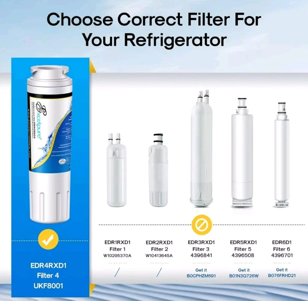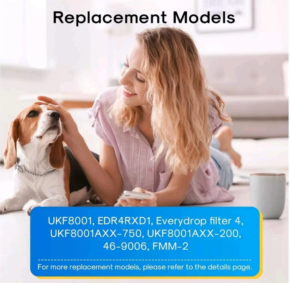 UKF8001 Replacement for Whirlpool FILTER 4, EDR4RXD1, 4396395, WRX735SDBM00, RWF0900A, EFF-6007A, MFI2568AES, MFI2569VEM, RFC0900A, WF295, PURICLEAN II, Refrigerator Water Filter, 3PACK