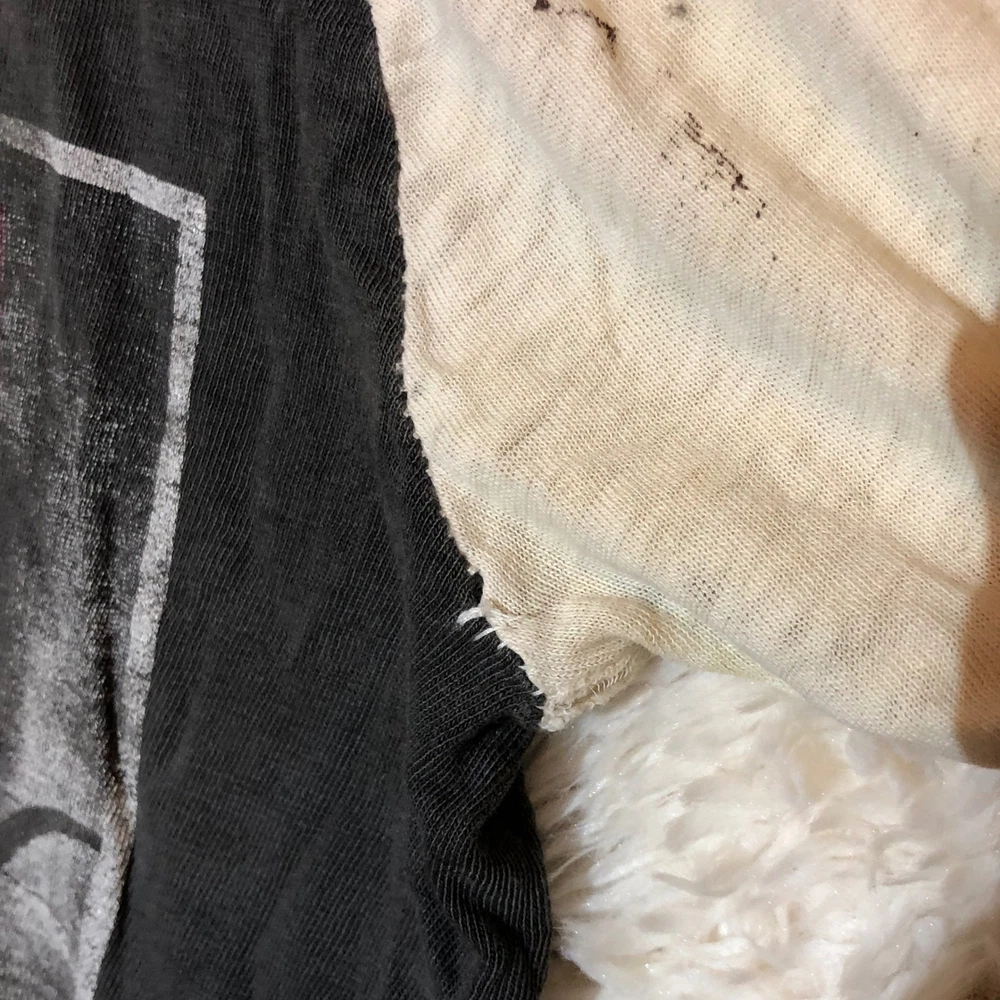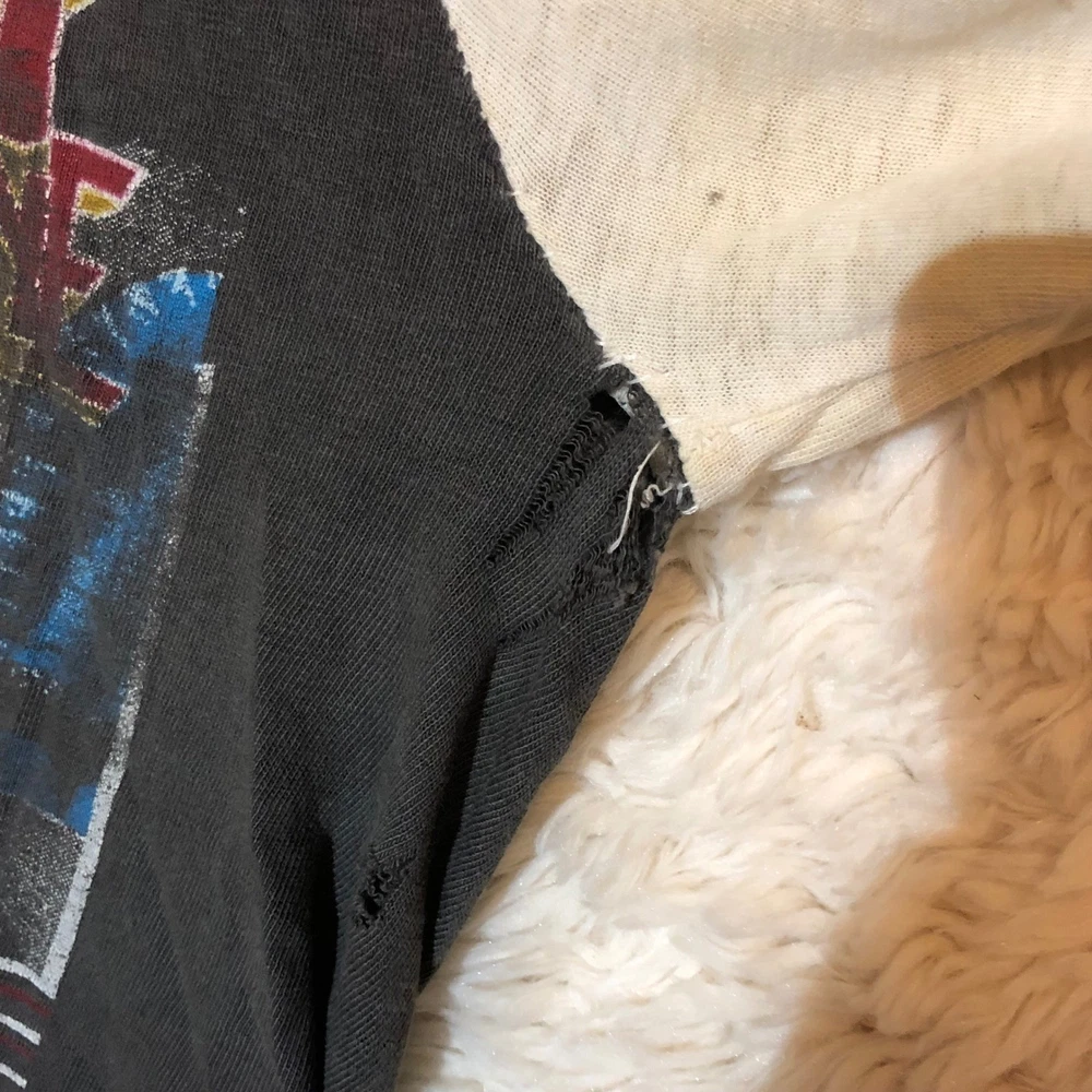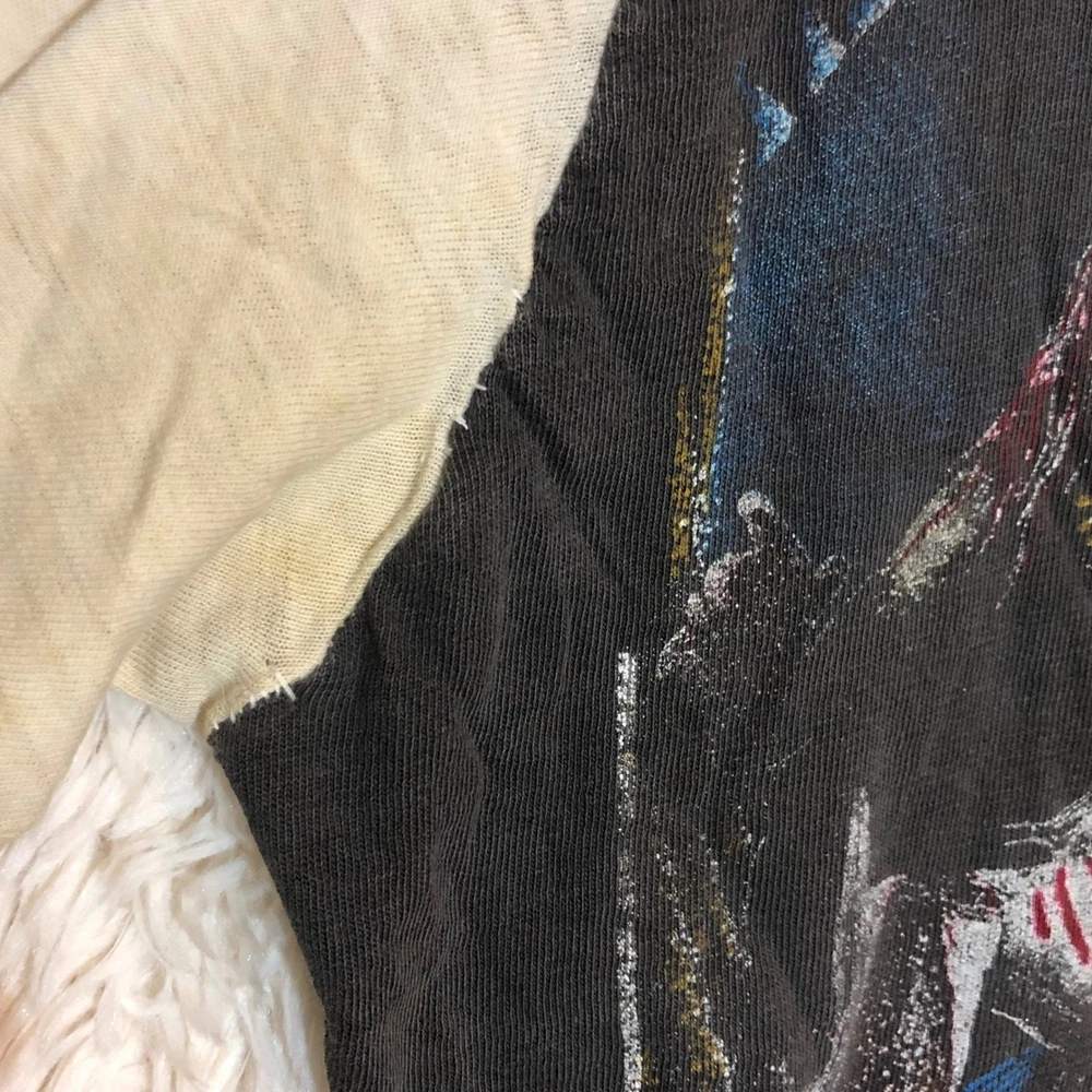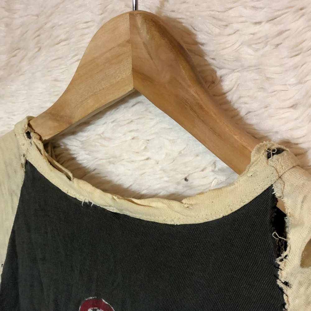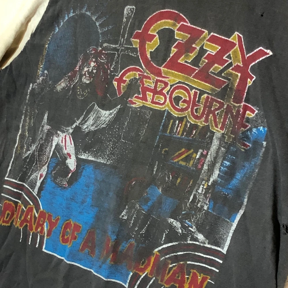 Vintage Ozzy Osbourne Blizzard of Ozz band raglan t-shirt. Features the iconic album artwork on the front and distressed, ripped sleeves and neckline. This iconic rock tee is perfect for concerts, casual wear, or as a statement piece. Measurements: • Chest: 19 in • Length: 26 in • Sleeve Length: 17 in Keywords: Ozzy Osbourne, Blizzard of Ozz, vintage t-shirt, band shirt, rock music, raglan, distressed, heavy metal, concert tee, graphic tee, retro, iconic, worn For measurements please see photos. All items come from a smoke-free and pet-free home. We use minimal scents but are not a fragrance-free home.