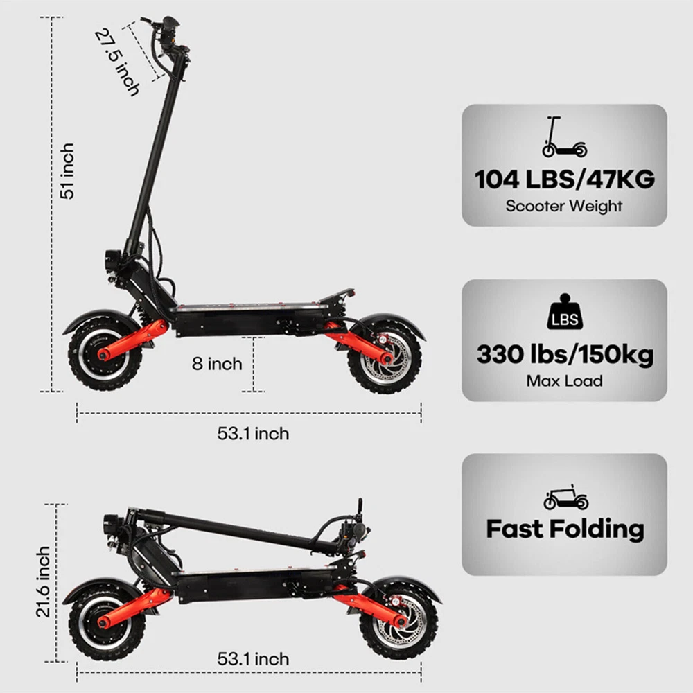 DESCRIPTION: Condition: 100% New Colour: As the picture shown ULTRON X3 Pro Electric Scooters The X3 Pro features an armored vehicle design, making it an extremely high-performance electric scooter. lt is built to tackle any terrain and offers a light show for night time rides. With its high mode, it delivers an exhilarating race-like start. LG-24AH Battery In order to provide longer battery life, ULTRON X3 PRO is equipped with a large capacity LG24AH battery, which can last up to 50-60Miles, providing enough power for long trips. 6000W (3000W*2) Powerful Motor The motor uses a 60mm magnet, allowing the motor to have greater power output. The speed of the motor can reach 2044rpm, 0-38 miles only 6 sceonds, the fastest speed can reach 56MPH or more, and can easily climb the slope of 35-40 degrees. Dual Hydraulic Shock System Using a 125mm hydraulic shock absorbing design can prevent the scooter from excessive beating and achieve stable cycling. The 2000LBS spring can be adjusted according to the weight of the cyclist ,Providing the most comfortable cycling experience for cyclists. Dual Hydraulic Brake System Ultron X3 Pro uses a dual piston hydraulic brake system which is matched with 160mm stainless steel discs. At the same time, the EBS function is used to improve the brake effect, which brings safe protection to the cycling. Tips ULTRON offers a free warranty ranging from 3 to 12 months from the date of purchase for customers who have bought an ULTRON scooter. During the warranty period, damaged parts, including shipping costs, will be provided to the user free of charge. We are dedicated to delivering excellent after-sales service to our customers. Q&A 1: What kind of battery is the scooter and range ? ULTRON X3 PRO uses LG 60V45AH battery (LG-M50LT). the quality is very stable. the maximum range can arrive to 50-62 Miles (80-100km). it depends on the weight of the rider. but also has a relationship with road conditions 2: What is the speed of X3 PRO ? The fastest speed of the X3 PRO depends on the weight of the rider. but also has a relationship with road conditions and power. we have tested that a 155 lbs (70KG) rider can reach a maximum speed of over 59 MPH (95KMH) when the battery is fully charged. 3: Is it stable during high-speed riding ? X3 PRO is a scooter specially designed for high-speed riding. It has very good stability, and there will be no shaking of the handlebar when riding at high speed. 4: Can the X3 PRO use road tires ? X3 PRO comes with off-road tires by default. If you need road tires, we suggest you order tires separately. 5: Is my electric scooter waterproof ? ULTRON recommends all riders to maintain safe riding habits. In order to protect the quality and functionality of your E-Scooter. we strongly recommend that you do not ride your E-Scooter in rainy or snowy weather. 6: How to shipping ? Your order will ship within 48 hours of placing it. (Saturday and Sunday orders ship on Monday). NOTE: 1. Due to the hand measurement, there may have error measurement about 1-5mm. 2.Item color displayed in pictures may be showing slightly different on your computer monitor since monitors are not calibrated same. Your understanding will be highly appreciated. SHIPMENT: 1.Buyer take responsibility in import / tax cost (not included in item price) 2.Pls contact with us to confirm extra cost if you need to upgrade the shipping option 3.If there's any concern about shipping, pls contact with us for further confirmation RETRUN POLICY: -30 DAY MONEY BACK RETURN POLICY: 1. If you are unhappy with your item or changing of mind purchases for whatever reason, pls keep the item and package original. Buyer needs to afford the return postage. Besides, original postage will not return. 2. Please contact us within 30 days if you have a faulty item and we will cover the return postage where necessary, we do not cover this outside 30 days of purchase. -ADDRESS CHANGES: 1. If you enter the incorrect name or shipping details before purchasing, we will arrange shipment for you according to your ebay address. 2. We are not responsible for these changes if there is a mistake entered by the buyer. CONTACT US: 1. Our working time is from Beijing time 9:00am to 18:00pm on working days. 2. We hope to give you a good shopping experience. We will glad to help you solve problems once we receive your letter on working time. 3. If you have any questions or advice about the product you receive, pls contact us and send the pictures about the item firstly, we will check the issue for you ASAP and make you sastified.