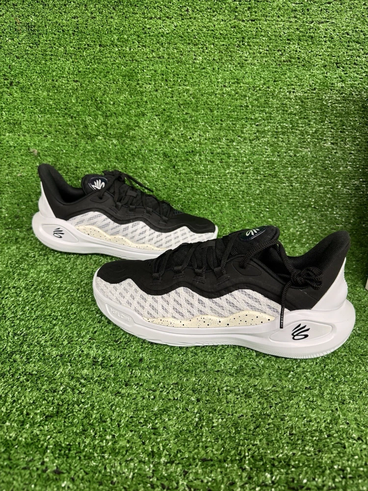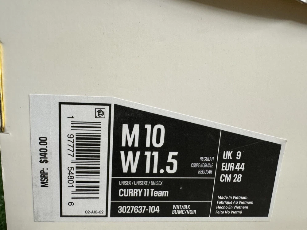 The Under Armour Curry 11 Team basketball shoes feature a lace-up closure, designed for men in a size 10 (UK 9) with a low-top shoe shaft style. These athletic shoes in white/black color have a durable UA Flow outsole, internal midfoot shank, molded sockliner, and external 3D-molded TPU for performance on the court. The shoes are part of the Curry 11 Team product line, with a theme of basketball and character inspiration from Steph Curry. With a standard shoe width and solid pattern, these shoes are ideal for basketball enthusiasts looking for quality and style in their footwear. SKU: E4 DATE: 1/2/25 LISTED BY: SK, LH CONDITION: NWB SIZE/SHADE: 10.5/ Black