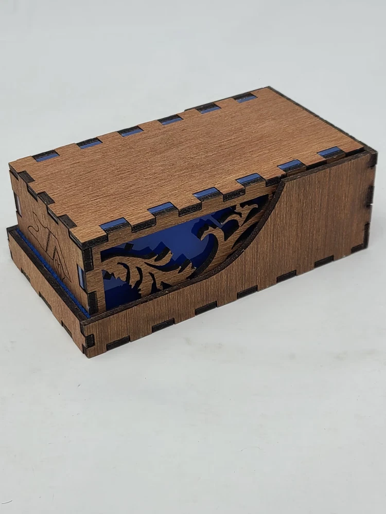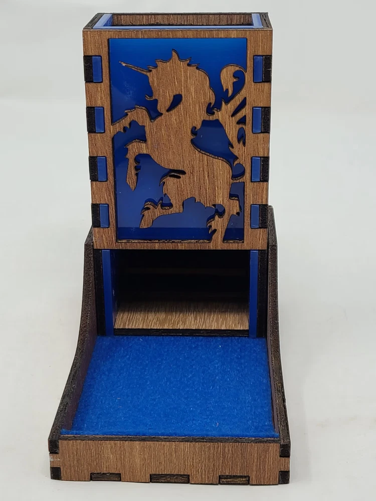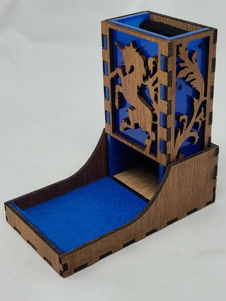 UNICORN Dice Tower Tray wood & blue acrylic nesting portable tabletop games DND