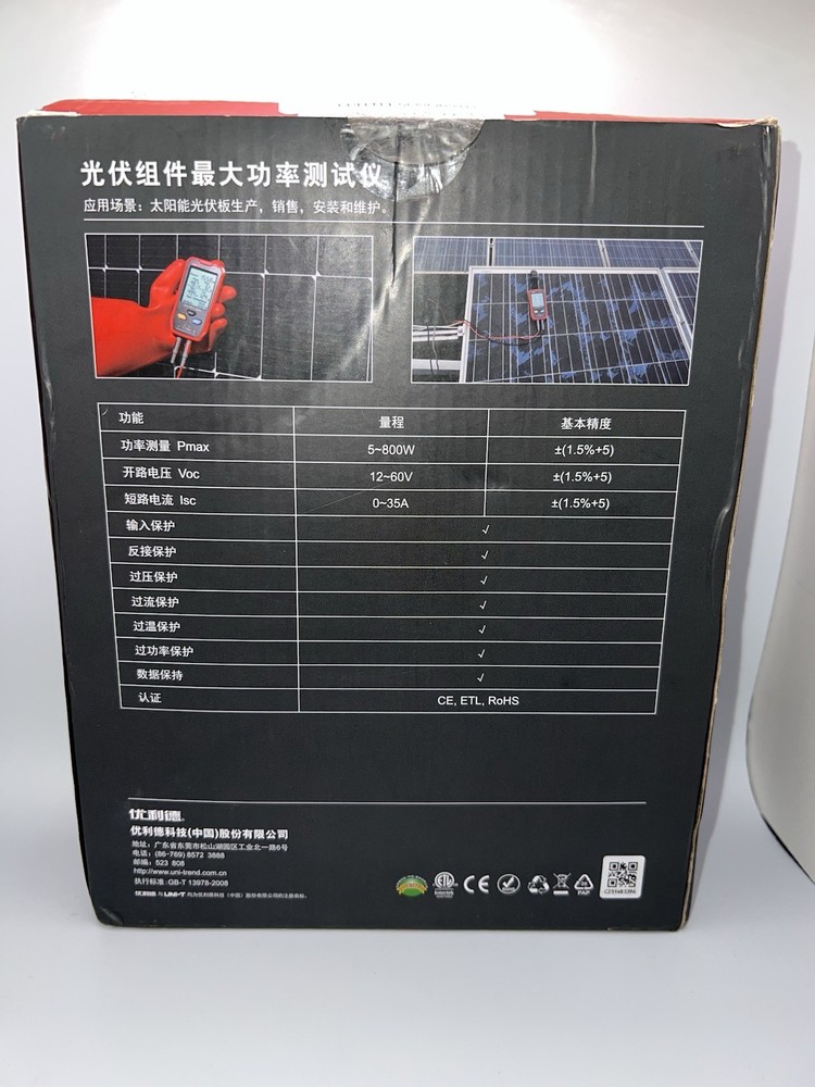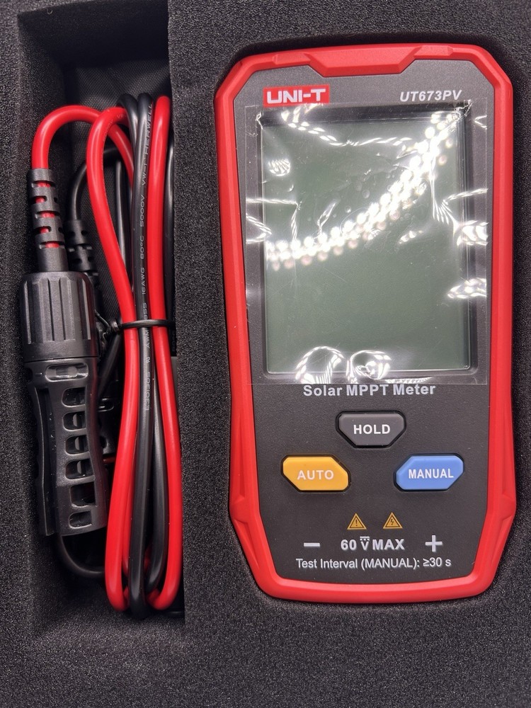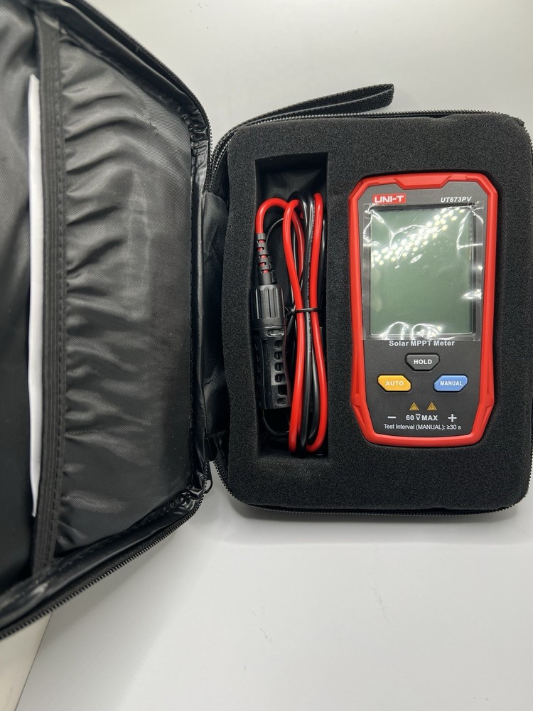 The UNI-T UT673PV Solar MPPT Meter Photovoltaic Panel Tracker Tester is a portable device designed for testing the maximum power output of solar photovoltaic panels. With a sleek design and compact size, this unit is easy to transport and use on the go. The package includes a UT673PV meter, paper manual, cloth bag, MC4 wrench tool, and MC4 test lead, providing everything needed for a thorough testing experience. Powered by the sun, this solar powered tester is a reliable tool for ensuring optimal performance from solar panels.