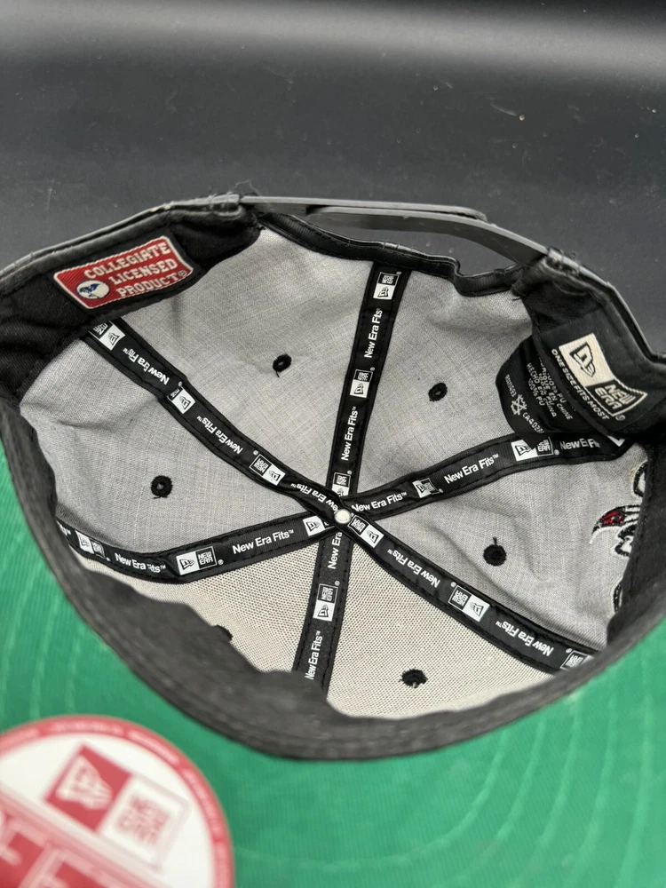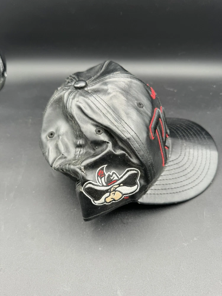 UNLV Faux leather hat. Hard to tell from photos that the condition is very bad. The leather is tearing and needs to be reshaped. It’s a SnapBack and from the early 2010s.