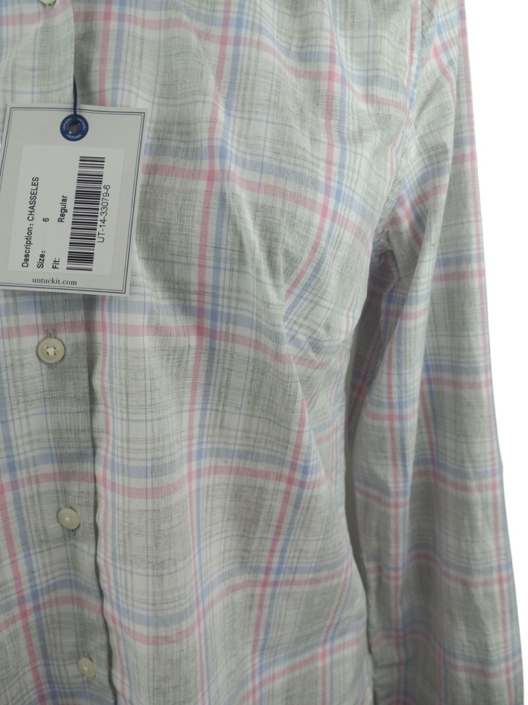 UNTUCKIT Shirt Women 6 Chasseles Gray Pink Blue Plaid Button Up Top Long Sleeve. 100% Cotton. *Laying flat pit to pit 19" *Laying flat shoulder to hem 25" *All reasonable offers accepted Items shipped one business day or less! 100% Satisfaction Guaranteed!