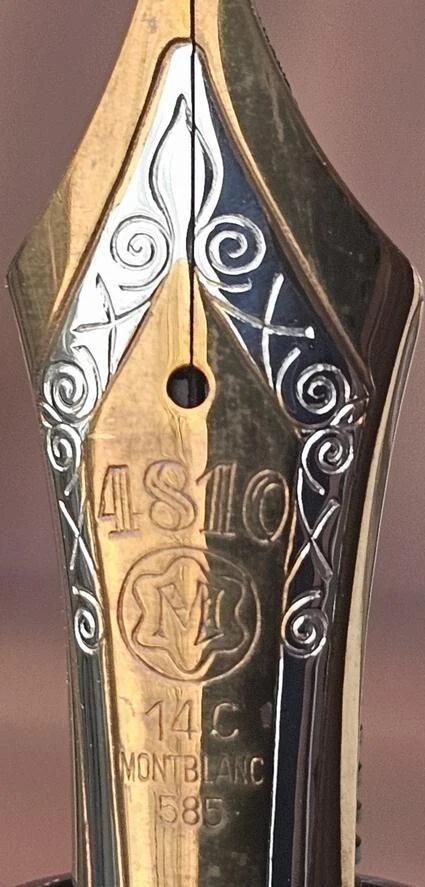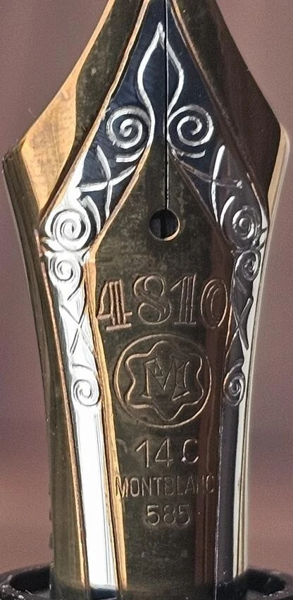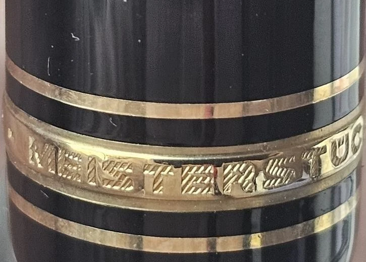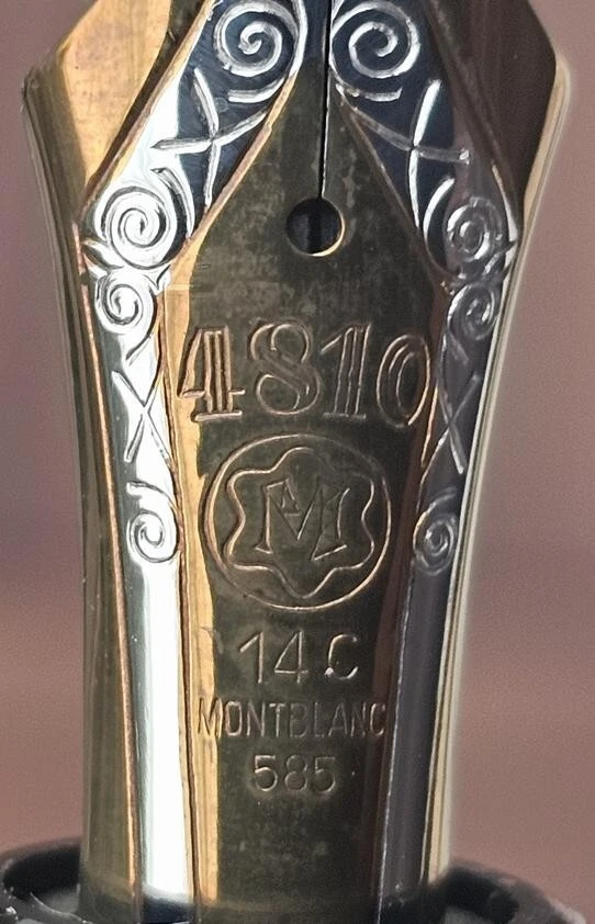 Type: Fountain Pen Brand: Montblanc Ink Color: Black Personalized: No Vintage: Yes Country/Region of Manufacture: Germany Material: Resin Nib Size: Fine (F) Nib Material: Gold, 14K Features: Gold Trim
