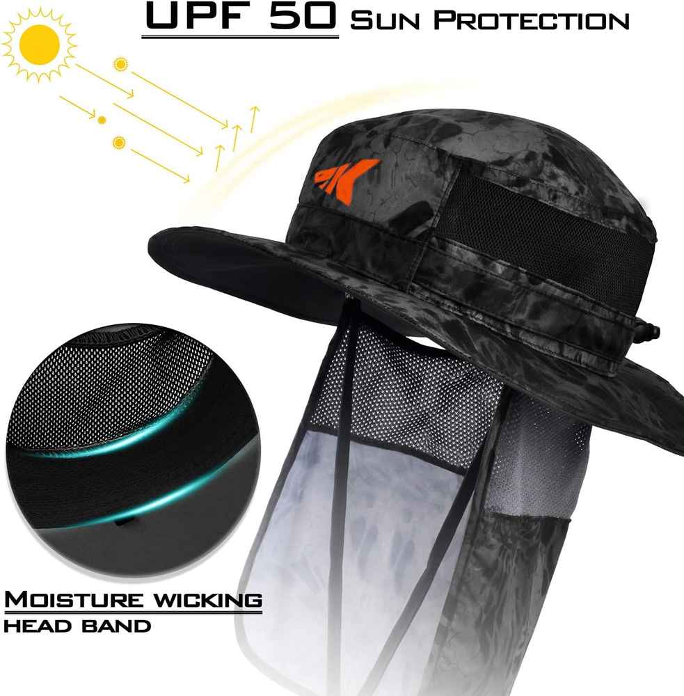 UPF 50 Boonie Fishing Hat with Removable Neck Flap for Men