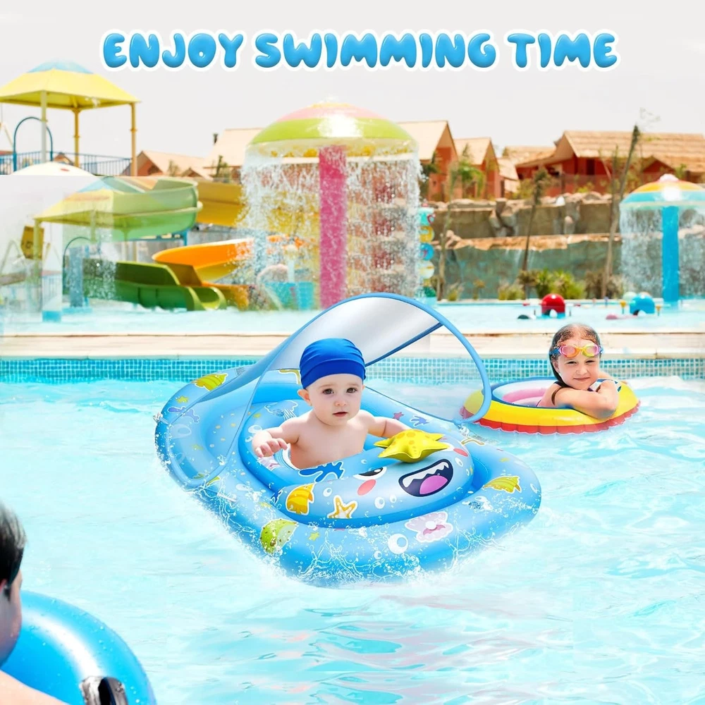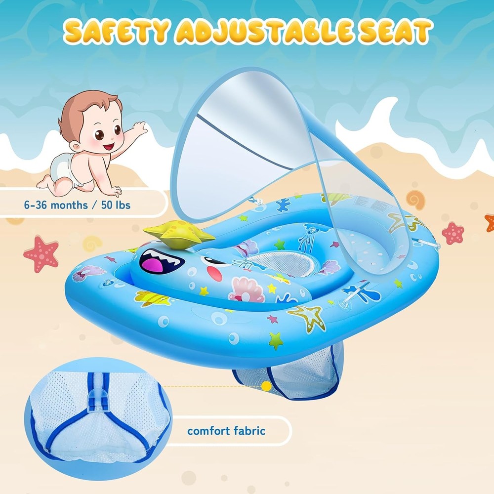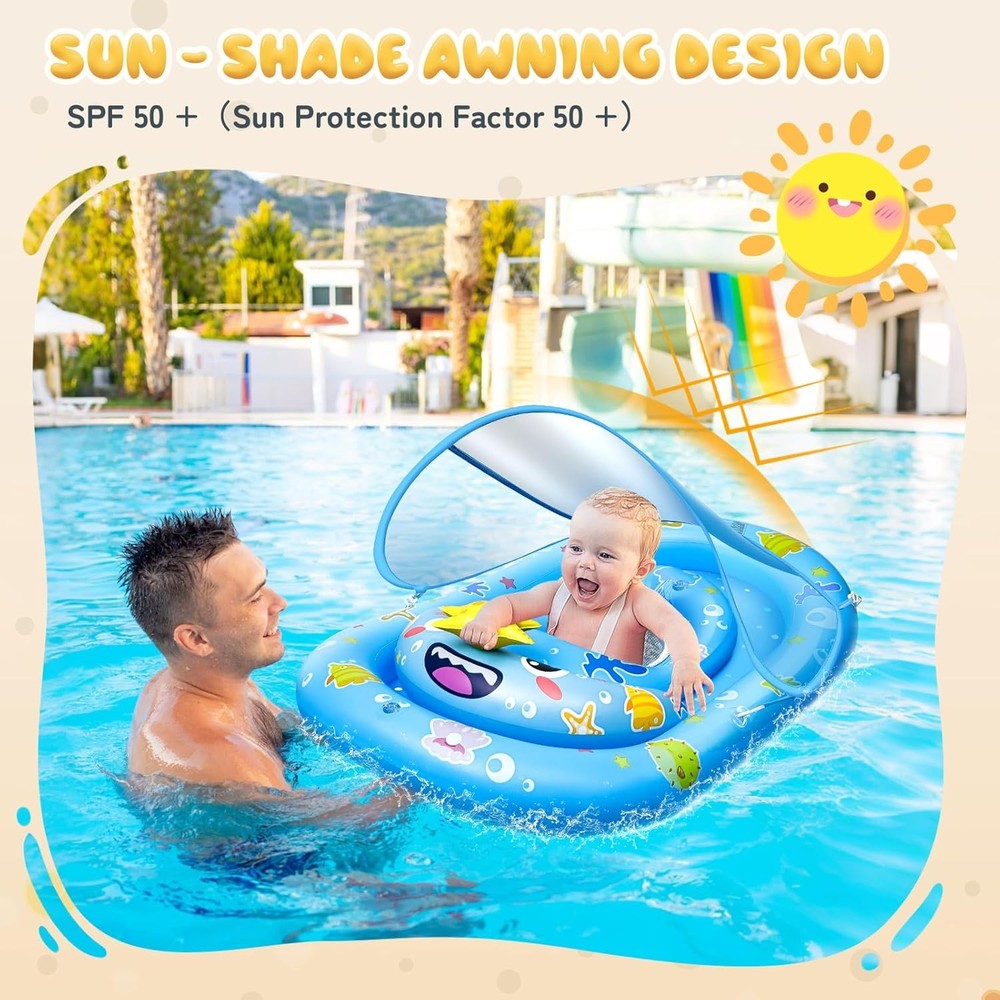 UPF50+ Baby Float with Canopy for Sun Protection Inflatable Pool Fun for Kids