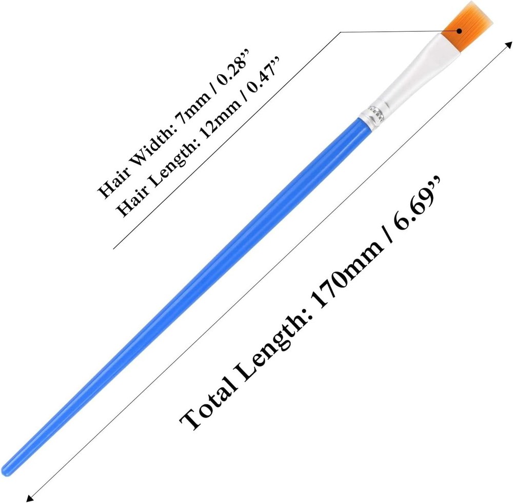 UPINS 20 Pcs Flat Paint Brushes, Small Brush Bulk for Detail 7mm, Blue Product Details Color: Blue Material: Plastic Size: 7mm Brand: UPINS Brush Width: 0.28 Inches Bristle Type: Flagged Bristle Manufacturer: UPINS Item Weight: 0.06 Kilograms Product Dimensions: 7.87 x 5.51 x 1.18 inches Item Weight: 1.94 ounces Item model number: 89-1702 Package: One package contains 20 pieces small paint brushes for crafts in blue color, it's suit for art class and normal use,great for artists, amateurs, students, teens and painters of all levels,sufficient quantity for Your Friends and Families Who Have Fun in Painting Short Handle Easy Control: Short plastic handle provides easy control and manageability, especially suitable for kids, children, students or crafters of any age, paint brushes for kids set a wonderful gift idea for your friends or families that enjoy painting Quality Material: The paint brush pack ist made of quality nickel plated copper and solid wood handle, so they are won’t wobble, shed and not easy to break off,Long-term use, spray painting, and cleaning many times does not affect the performance or appearance Multifunctional: Professional small paint brush can meet all your needs. Multipurpose brushes are suitable for watercolor painting, oil painting, gouache painting, acrylic painting, body, nail, face painting, miniature, model, ceramics, arts and crafts painting, etc Easy to Clean: After using the flat paint brushes, please wash with warm soapy water and gently remodel it with your fingers, put clean brushes vertically, head-side-up, avoid scrubbing when cleaning brush