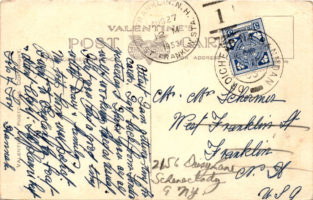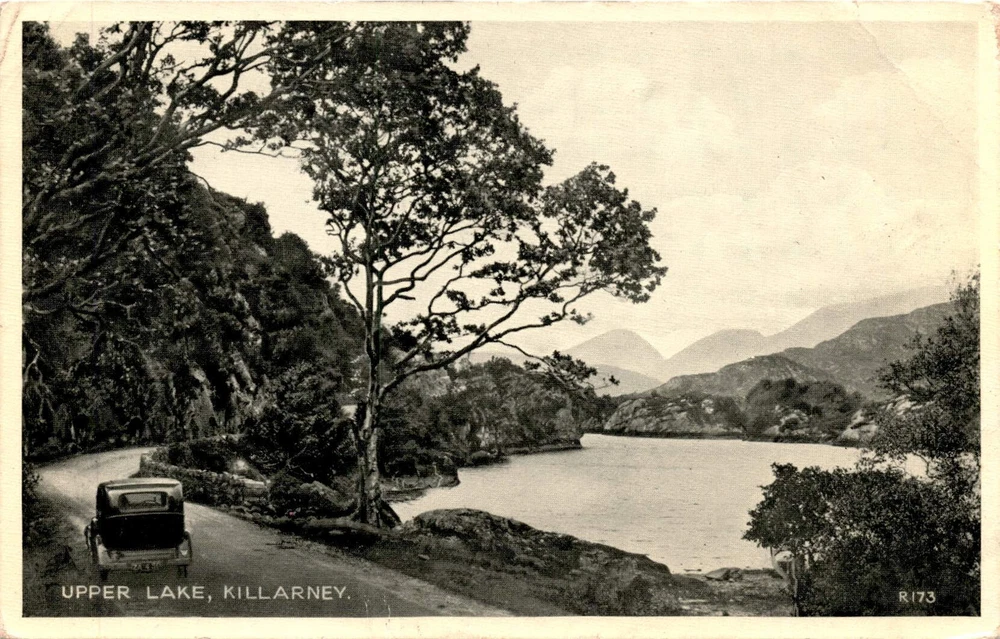 MAKE AN OFFER. THE MORE YOU BUY THE BETTER DEAL I WILL ACCEPT The postcard is a message sent from someone who recently returned from London. The front of the postcard features an image of Upper Lake in Killarney, a popular tourist destination in Ireland known for its stunning natural beauty. The message on the back is a personal note to someone named Mr. Schermer, who lives on West Franklin Street in Schenectady.
