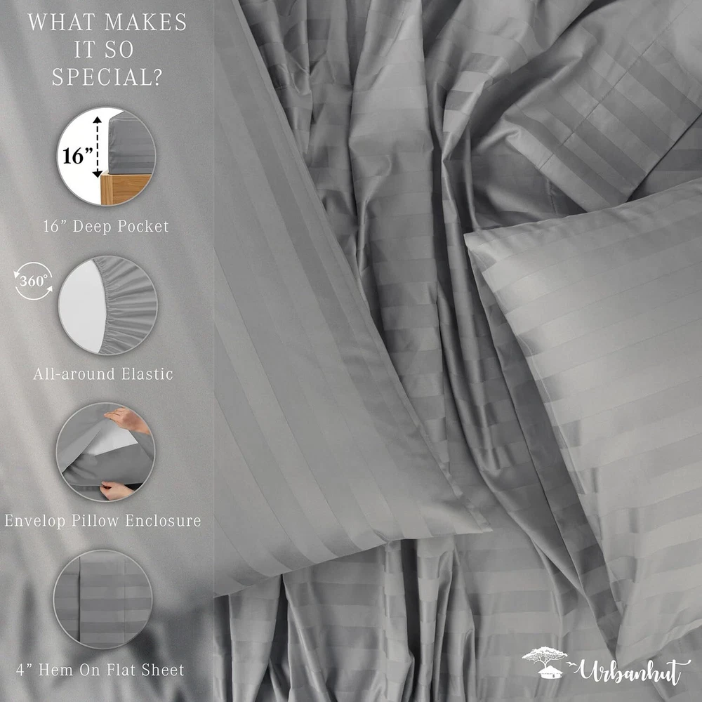 URBANHUT 1000 Thread Count Egyptian Cotton Sheets Damask Striped Queen Size, ...