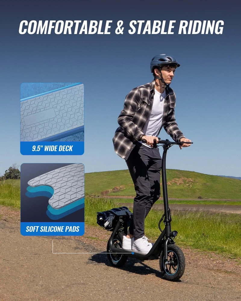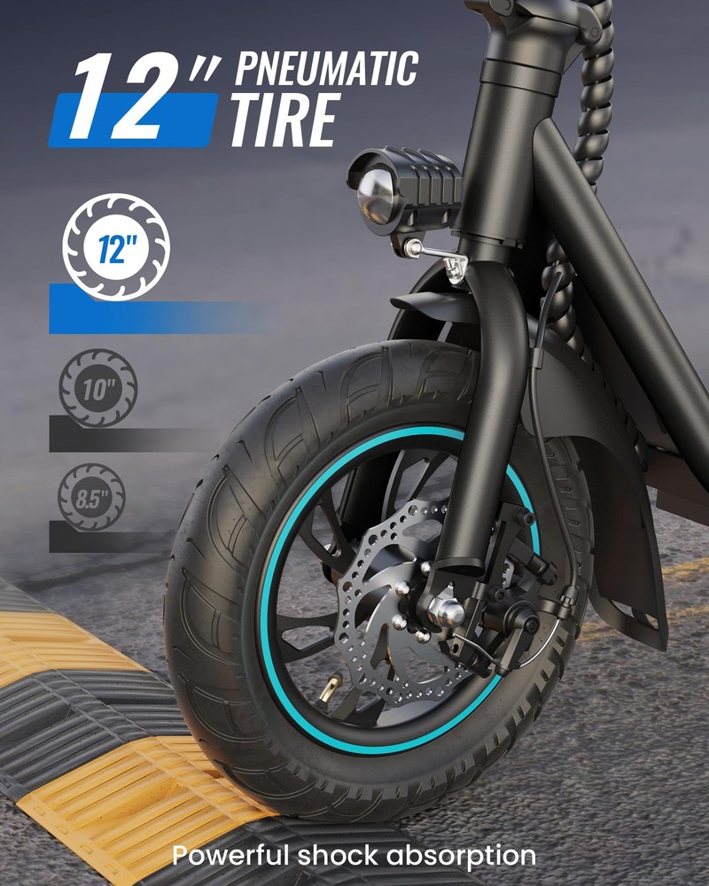 【Upgraded Electric Scooter】URBANMAX X2 implements the innovation of adult electric scooter with the addition of a removable yet sturdy basket equipped with extra long straps that allow you to easily carry anything you want. The X2 has a large console, folding mechanism, and has passed rigorous UL2272 testing. 【Powerful Motor & Long Battery Life】 The electric scooter for adult has a powerful 550W motor that easily climbs 15° slopes, and can travel 20 miles at 18.6mph on a 5-hour charge. The electric scooter has 3 speed modes with adjustable pole is suitable for drivers from 5 '3 "to 6' 1". Maximum load 220LBS. 【Comfortable & Stable Riding】 Equipped with sturdy 12-inch pneumatic tires, which can effectively absorb ground vibration, provide a smooth riding experience, and can adapt to a variety of uneven roads and terrains. The 9.5-inch wide deck provides enough room for your feet, even for a small pet, and the silicone pads on the deck effectively relieve foot fatigue, providing a softer standing environment, increased balance and comfort. 【Safe Riding】 Electric scooter adults use front and rear disc brakes to ensure timely and effective braking and improve your driving safety. Bright front and rear lights, along with a bell, alert pedestrians and make riding at night safer. 【Portable & Durable】 The URBANMAX X2 electric scooter's folding design makes it easy to store in your car, school or office and other compact spaces. Whether it's for work or school, shopping or a weekend getaway, it's got you covered.