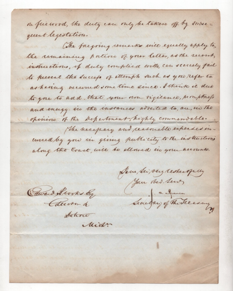 US 1843 OFFICIAL LETTER FROM THE TREASURY DEPT. SIGNED BY THE SECRETARY OF THE TREASURY J.E. FENCER REGARDING IMPORTATION OF WOOD FROM CANADA & US 20% CUSTOM DUTIES FOR FUEL CONSUMED ON THE BOATS &/OR IMPORTING FOR RESALE LENGTHY 4-PAGE LETTER FULLY TRANSCRIBED PLEASE VISIT MY EBAY STORE : Filatco Stamps BUY 5 ITEMS SHIPPING & REGISTRATION IS FREE INTERNATIONAL BUYERS PLEASE NOTE: ALL SHIPMENTS INCLUDE TRACKING Feel free to ask if you have any questions. PAYMENT WITHIN 2 DAYS IS APPRECIATED . FEEDBACK : I APPRECIATE YOUR BUSINESS AND MY TOP CONCERN IS TO MAKE SURE YOU ARE 100% PLEASED WITH ANY ITEM YOU PURCHASE. IF YOU HAVE A CONCERN OR A PROBLEM WITH INVOICE, SHIPPING OR ANY ITEM YOU RECEIVED PLEASE CONTACT ME FIRST BEFORE YOU LEAVE ANY FEEDBACK. I GUARANTEE YOU WILL BE 100% SATISFIED WITH THE TRANSACTION. I WILL CERTAINLY LEAVE YOU A POSITIVE FEEDBACK AS SOON AS I RECEIVE YOURS.