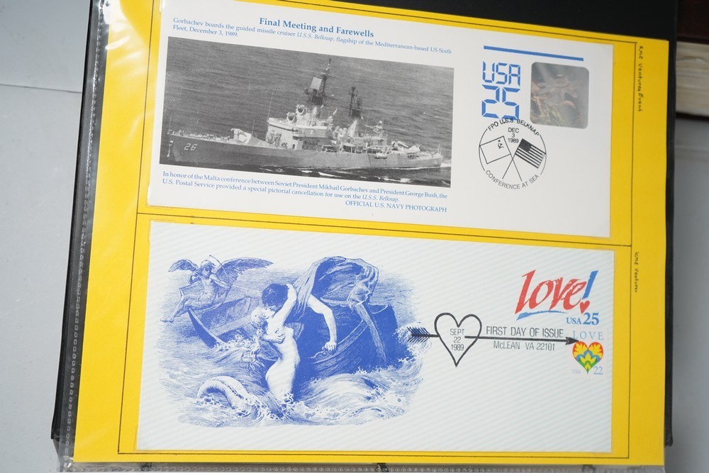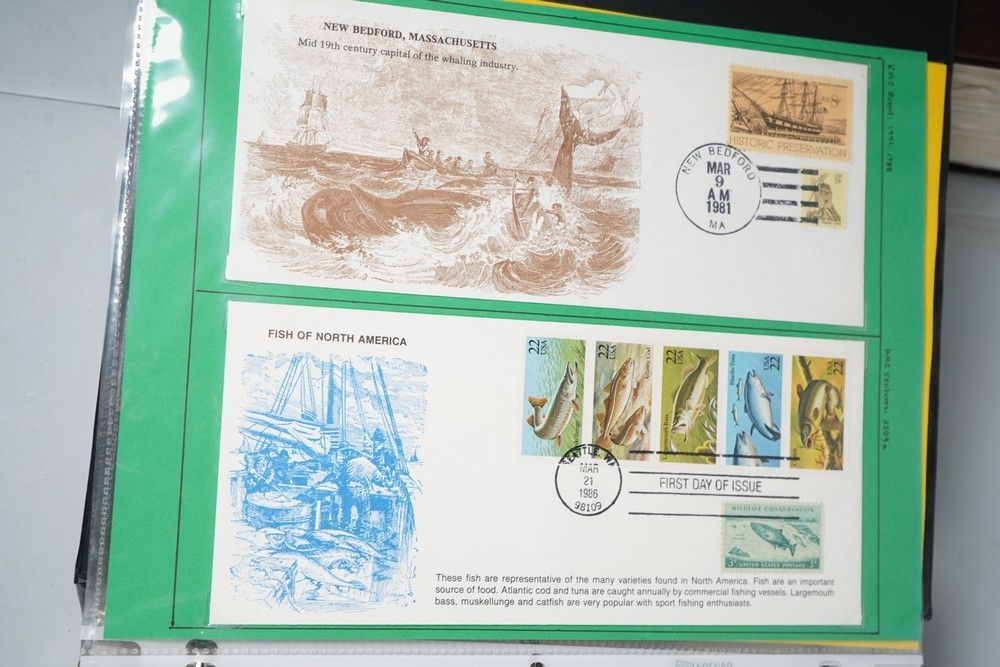 SMALL COLLECTION OF BETTER US FDCS IN COVER ALBUM. INCLUDES KMC VENTURE. BOBCAT $2 FULL SHEET PUGH HAND PAINTED, BEVIL (CHRISTMAS, CLOWNS, BASEBALL & COLUMBUS, GEERLINGS SPACE, FOOTBALL & MARSHALL ISLANDS MIXED FRANK, HIDALGO SPACE COMBINATION, DORIS GOLD SPACE HAND PAINTED, CAMILE RENDAR CATS HAND PAINTED, JACK FOLLOWS BASEBALL HAND PAINTED, PUGH FULL SHEETS & FARLEY NATIONAL PARKS. ATTRACTIVE GROUP. (SCROLL DOWN TO VIEW ALL COVERS INCLUDED IN THIS COLLECTION) PLEASE VISIT MY EBAY STORE : Filatco Stamps BUY 5 ITEMS SHIPPING & REGISTRATION IS FREE INTERNATIONAL BUYERS PLEASE NOTE: EBAY AND PAYPAL REQUIRE REGISTRATION FOR TRACKING INTERNATIONAL SHIPMENTS. EBAY CHARGES $15.00 FOR SHIPPING LABELS WITH TRACKING # US POST OFFICE CHARGES $14.95 FOR REGISTRATION # + POSTAGE Feel free to ask if you have any questions. PAYMENT WITHIN 2 DAYS IS APPRECIATED . FEEDBACK : I APPRECIATE YOUR BUSINESS AND MY TOP CONCERN IS TO MAKE SURE YOU ARE 100% PLEASED WITH ANY ITEM YOU PURCHASE. IF YOU HAVE A CONCERN OR A PROBLEM WITH INVOICE, SHIPPING OR ANY ITEM YOU RECEIVED PLEASE CONTACT ME FIRST BEFORE YOU LEAVE ANY FEEDBACK. I GUARANTEE YOU WILL BE 100% SATISFIED WITH THE TRANSACTION. I WILL CERTAINLY LEAVE YOU A POSITIVE FEEDBACK AS SOON AS I RECEIVE YOURS.