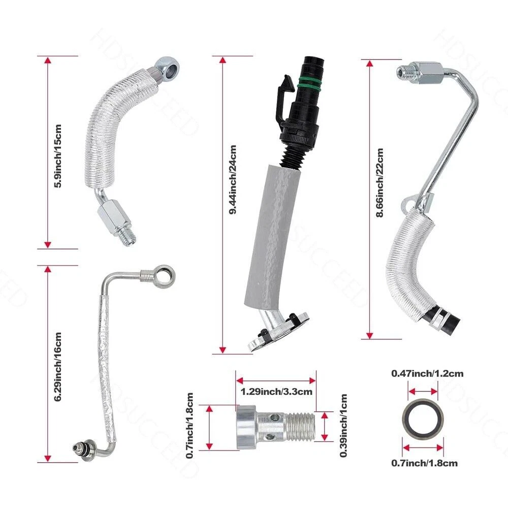 55567067 55568031 55587854 25198546 For Chevy Engine Turbo Oil Return Pipe Tube ITEMS DESCRIPTION: 100% Brand New. (Never Been Used or Installed) Designed to fit like the part for easy routing in tight engine compartments. Engineered improvements have been incorporated into parts with a high failure rate to improve performance and longevity. A proper functioning Turbocharger Oil Line is needed to avoid engine failure Direct replacement for a proper fit every time This part has undergone SAE J343 testing for burst, tensile, cold bend and leakage Turbocharger Oil Return Line also available Fitment: For 2013-2019 Buick Encore 1.4L L4 For 2011-2019 Chevy Cruze 1.4L L4 For 2012-2019 Chevy Sonic 1.4L L4 For 2013-2019 Chevy Trax 1.4L L4 For 2016 Chevy Cruze Limited 1.4L L4 Package Includes: TURBO OIL FEED PIPE *1 TURBO OIL RETURN DRAIN PIPE *1 1pcs 8.5" Turbo Charger Coolant Return Hose Line 1pcs Turbo Charger Cooling Feed Line Pipe Professional installation recommended(No Instruction Included) NOTE: Communication is the best way to solve the problem. If you have any problems after purchasing, please contact us in time, before opening return or case.
