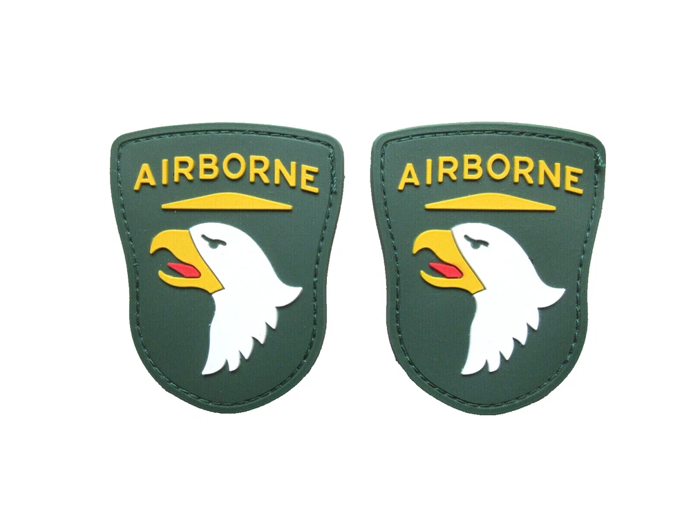 *ARMY 101ST AIRBORNE DIVISION PVC RUBBER PATCHES* L9 2 LOT / See ruler in pictures for patch sizes Green colored patches 2 1/2 inches wide x 3 inches high NEW hook & loop backed patches Patches will be shipped USPS with tracking # FAST SHIPPING Check all pictures good before you buy $$$ Check out my other PATCHES for sale in my Ebay store * Buy with confidence see my ratings and feedback * Check out my other items ! I STRIVE FOR A FIVE STAR RATING. THANK YOU. Froo www.froo.com | Froo Cross Sell, Free Cross Sell, Cross promote, eBay Marketing, eBay listing Apps, eBay Apps, eBay Application
