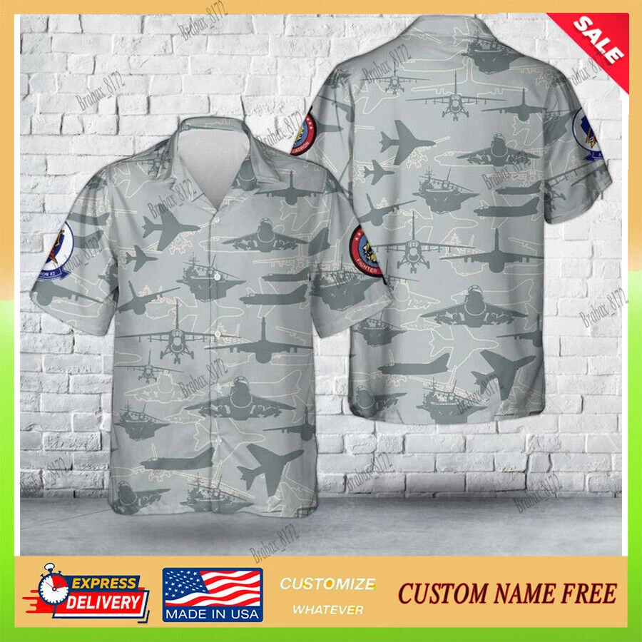 US Air Force Army LTV A 7 Corsair II Silhouette Hawaiian Shirt 3D With Pockets