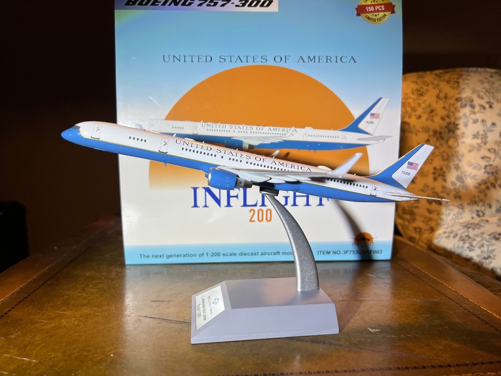 Up for sale in this auction, is this 1:200 scale Die cast metal U.S Air Force USAF Boeing 757-300 1:200 Inflight200 75300 model. This is a beautiful model, metal body with tampo painted graphics. All antennas and lights with small crystals, detailing in the engines a display stand with the option to show wheels up or down. The wheels up and down feature are held in with super magnets which makes it easy to switch out either way how you want to display this awesome replica! This model just came out and is selling out quickly it is such a beautiful model, it will be the centerpiece of any die cast aircraft collection. This model is located here in Sylvania OH, and will ship within 24 hours of the purchase. I am fighting CLL Leukemia, the past year my symptoms have manifested strongly, in the last few months, my numbers have raised quickly, so I am starting to sell more items of my collections, which has helped with the large cost of my medical bills. Out of work 3 weeks this year dog sick, so I am starting to sell more items of my collections, which has helped with the large cost of my medical bills. I have made the pricing better than any other item like this on eBay. (Bids only in the US CONUS please. Shipping to street addresses only, no PO boxes please. ) I reserve the right not to accept bids from multiple negative eBay feedback bidders. This is a super chance to get an Inflight 1:200 scale Boeing U.S Air Force USAF 757-300 at a super price with the item located here in Ohio. Check my other auctions for more great items!