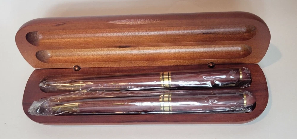 Stratford Goldtone Ballpoint Pen Mechanical Pencil Set Case w Ink Refill Vintage
