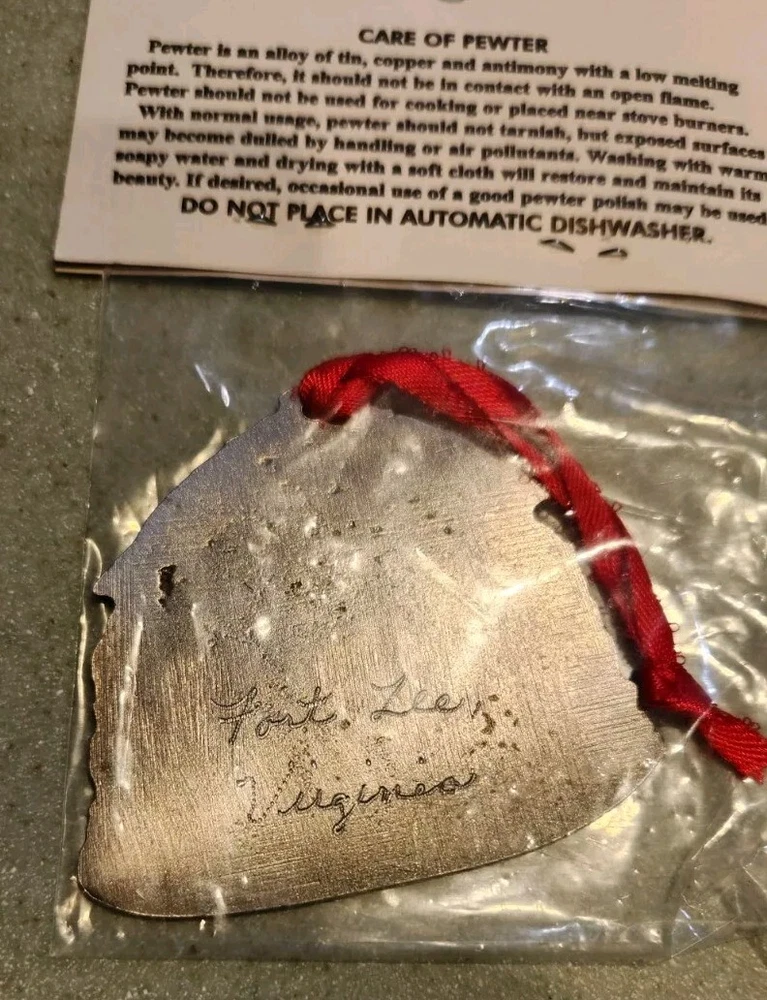 This US Army Quartermaster Corps Supporting Victory Crest Pewter Ornament is a perfect addition for collectors of militaria. Made in the United States (each piece crafted by hand by Virginia Pewtersmith/Fischer Pewter in Virginia) this crest ornament is a great representation of the Army's history and culture. The design features the Quartermaster Corps emblem and the words "Supporting Victory" inscribed below. The piece is made of high-quality pewter and is perfect for display. This item is a great way to show support for the Army while also adding a unique and informative piece to your collection. Fort Lee engraved on back.