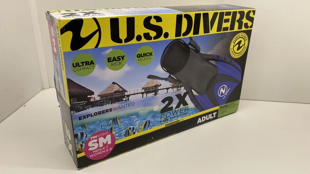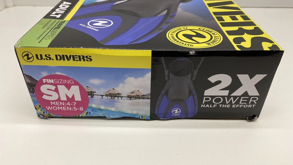 U.S. Divers Adult SM Men 4-7/Womens 5-8 Snorkeling/Diving Water Fins, Black/Blue. Condition is "New with box". Shipped with USPS Priority Mail.