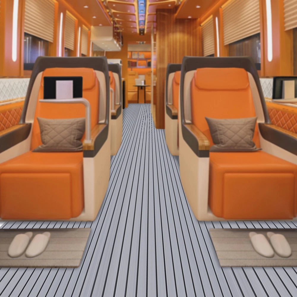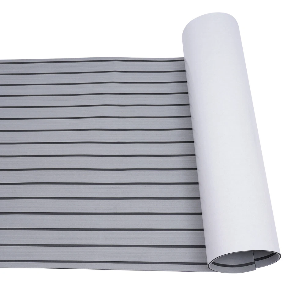 Application Il peut être utilisé sur les ponts de bateaux, les véhicules récréatifs, les yachts, les quais flottants, les salles de sport et autres endroits. Spécifications Matériau : Mousse EVA Couleur : Gris avec des bandes noires Type : Tapis de sol en teck Condition : Nouveau Longueur : 240cm/94,5''. Largeur : 90 cm/35.4''. Epaisseur : 6mm/0.24''. Poids brut : 2.2kg Installation 1. Mesurez la taille de l'emplacement cible et découpez la taille appropriée. 2. Nettoyez et séchez le sol, et assurez-vous que la surface est exempte d'huile, d'eau et de cire. 3. Collez-la soigneusement sur le sol. Le paquet comprend 1 x Tapis antidérapant Notes : 1. Évitez de placer des objets lourds et mobiles au-dessus, comme un conteneur. Le produit ne peut pas résister à une friction excessive. 2. Faites attention au feu en cas d'accident d'incendie. 3. S'il vous plaît permettre la légère différence de couleur causée par la lumière de tir et 1-3cm erreur en raison de la mesure manuelle, et assurez-vous que vous ne dérange pas avant l'achat. 4. Si vous avez l'impression que le collage d'une couche du tapis antidérapant n'est pas assez souple pour être confortable, vous pouvez coller 2 ou 3 couches pour vous assurer qu'il est assez souple.