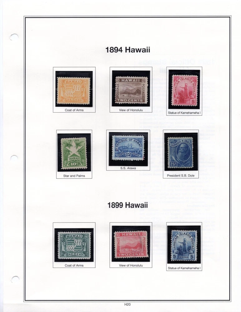 US HAWAII 1864-1899 COLLECTION OF 38 STAMPS MINT & USED MOUNTED ON 6 ALBUM PAGES SOME UNUSED WITH NO GUM SOME WITH HINGES, FEW NEVER HINGED IT INCLUDES SC. #63 & 73 MINT PLEASE VISIT MY EBAY STORE : Filatco Stamps BUY 5 ITEMS SHIPPING & REGISTRATION IS FREE INTERNATIONAL BUYERS PLEASE NOTE: EBAY AND PAYPAL REQUIRE REGISTRATION FOR TRACKING INTERNATIONAL SHIPMENTS. EBAY CHARGES $12.61 FOR SHIPPING LABELS WITH TRAKING # US POST OFFICE CHARGES $14.95 FOR REGISTRATION # + POSTAGE BUYER HAS THE CHOICE OF SHIPPING FIRST CLASS MAIL WITHOUT TRACKING # FOR $2.50 . IN THIS CASE BUYER ACCEPTS RESPONSIBILITY IF ITEM IS LOST IN TRANSIT. Feel free to ask if you have any questions. PAYMENT WITHIN 2 DAYS IS APPRECIATED . FEEDBACK : I APPRECIATE YOUR BUSINESS AND MY TOP CONCERN IS TO MAKE SURE YOU ARE 100% PLEASED WITH ANY ITEM YOU PURCHASE. IF YOU HAVE A CONCERN OR A PROBLEM WITH INVOICE, SHIPPING OR ANY ITEM YOU RECEIVED PLEASE CONTACT ME FIRST BEFORE YOU LEAVE ANY FEEDBACK. I GUARANTEE YOU WILL BE 100% SATISFIED WITH THE TRANSACTION. I WILL CERTAINLY LEAVE YOU A POSITIVE FEEDBACK AS SOON AS I RECEIVE YOURS.