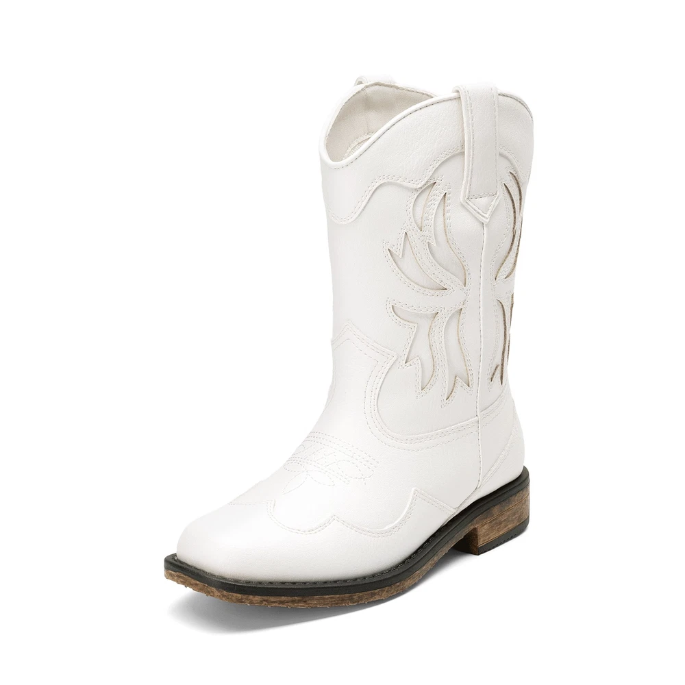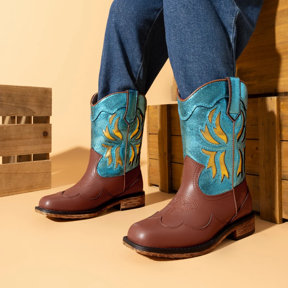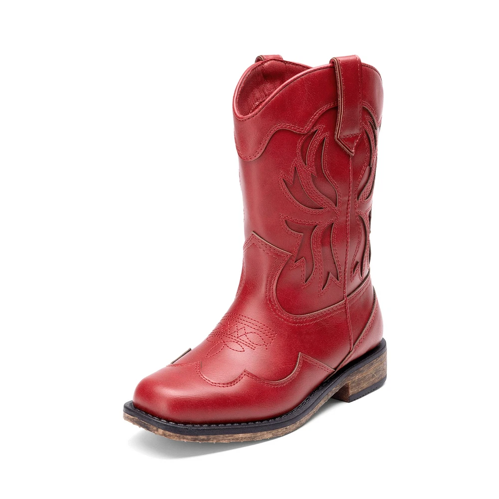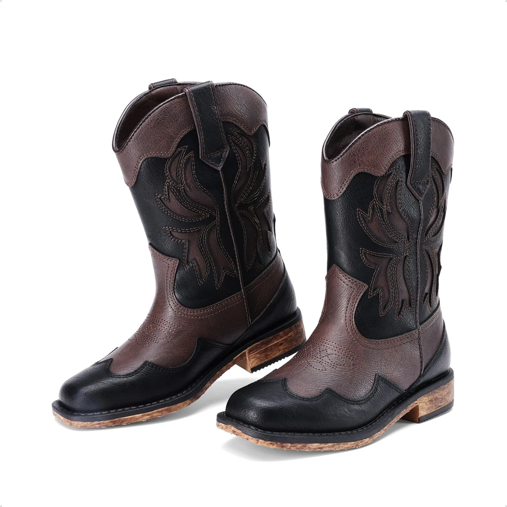 US Kids Boys Girls Western Boots Square Toe Mid Calf Riding Boots Cowgirl Boots