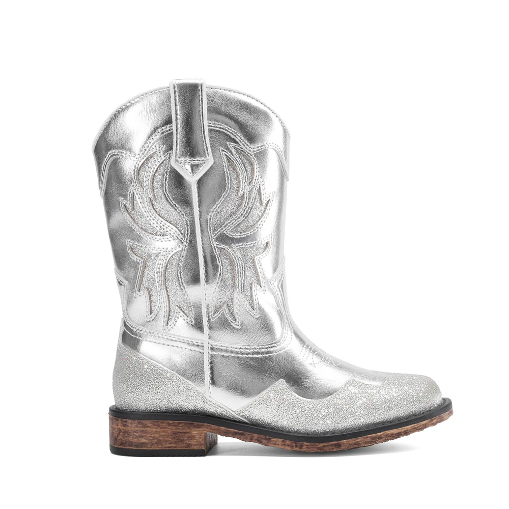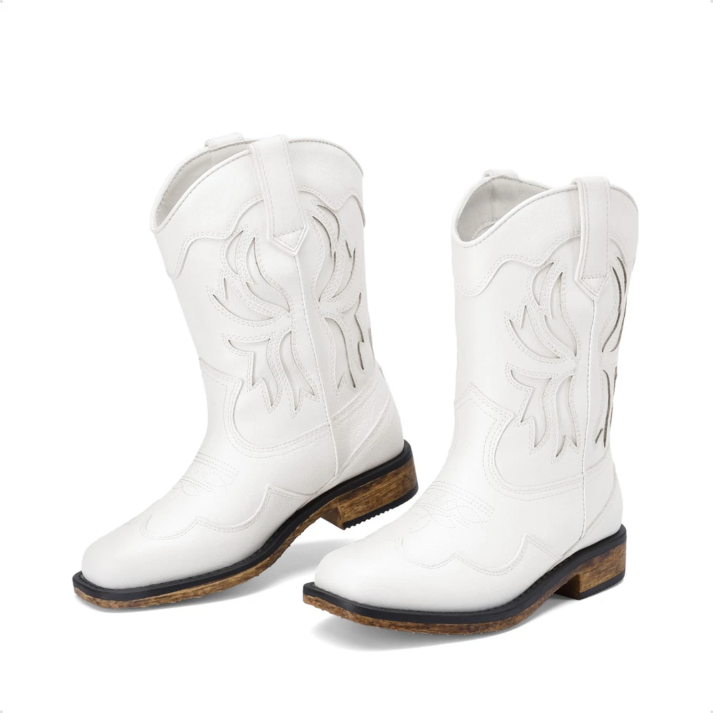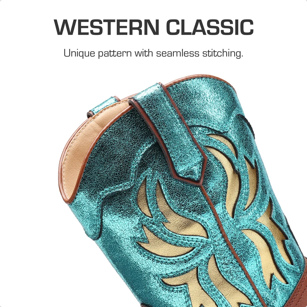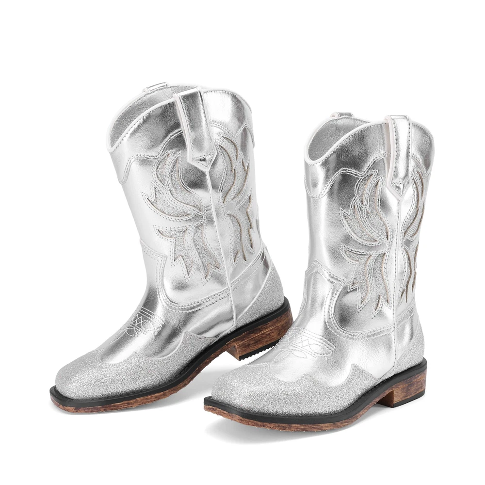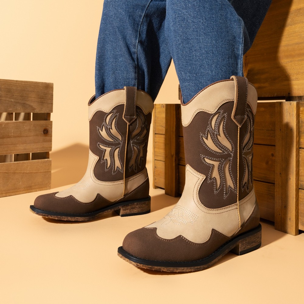 US Kids Boys Girls Western Boots Square Toe Mid Calf Riding Boots Cowgirl Boots