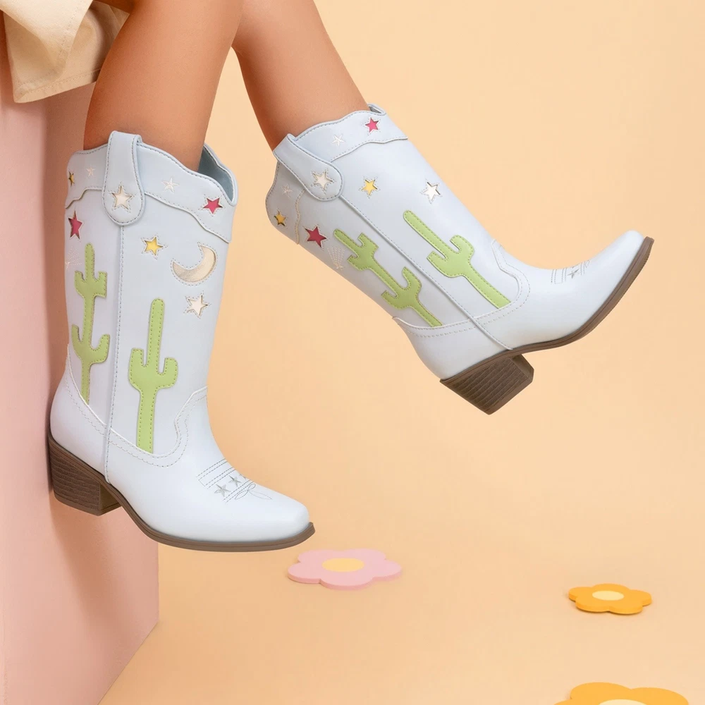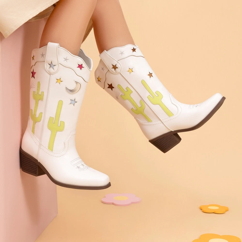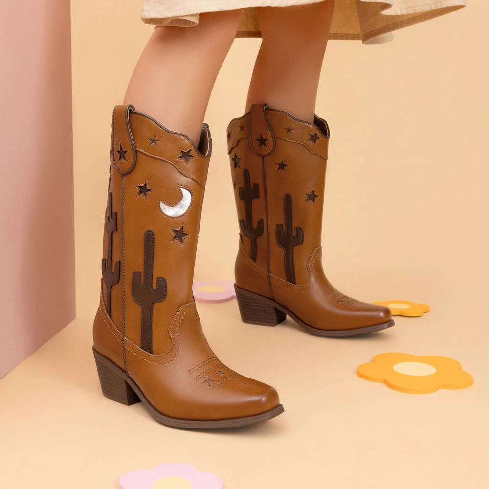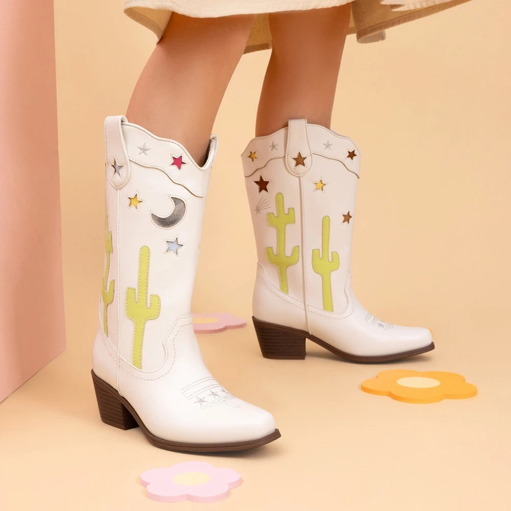 About this item Western Style : Sophisticated upper with cacti, stars, and moon designs for a unique flair. Durable & Slip-Resistant : Made from synthetic leather with a chunky heel and TPR outsole for stability. Comfortable Fit : Square toe for growing feet, soft lining, and supportive insole. Easy Wear : Pull tabs and wide shaft for simple on and off. Versatile Use : Suitable for parties, rodeos, horse riding, and everyday wear. Payment Shipping Return Contact us Feedback Payment 1.Payment must be received within 7 business days of auction closing. 2.We ship to your eBay or Paypal address. Please make sure your eBay and Paypal address is correct before you pay. Shipping 1. We try our best to ship out same day for payment cleared before 5.00 PM (Pacific Time) 2. Order placed on weekend or holiday will be shipped on Monday or next working day. Return 1.We offer 30 days return policy. Please contact us within 30 days from the date you receive your order if you have any issues with the product and want to return. 2.All items must be returned in the original packaging and you must provide us with the tracking shipping number, specific reason for the return, and your eBay ID. 3.We will refund you FULL WINNING BID AMOUNT, upon receipt of the item in its original condition and packaging with all components and accessories included, AFTER BOTH Buyer and Seller cancel the eBay transaction. Or, you can choose to get a replacement Contact us All communication is done through EBAY MESSAGES ONLY. If any question, please feel free to contact us via "Ask seller a question" or "Contact Seller",We try our best to reply to your emails as soon as possible, due to high volume of daily incoming emails and time zone difference, we may not be able to reply your emails immediately. Please allow 1-2 business days for us to response. Feedback When you receive the item and satisfied with the product, please leave us positive feedback. If for any reason you are not satisfied with your purchase from us, please contact so we can get to work and resolve this issue for you. Please don't leave neutral or negative feedback without giving us an opportunity to try and make it right. Our goal is to ensure a happy shopping experience with us. Your Positive feedback is very much appreciated! On Oct 20, 2025 at 00:55:46 PDT, seller added the following information: On Oct 20, 2025 at 02:29:26 PDT, seller added the following information: On Nov 5, 2025 at 00:23:55 PST, seller added the following information: