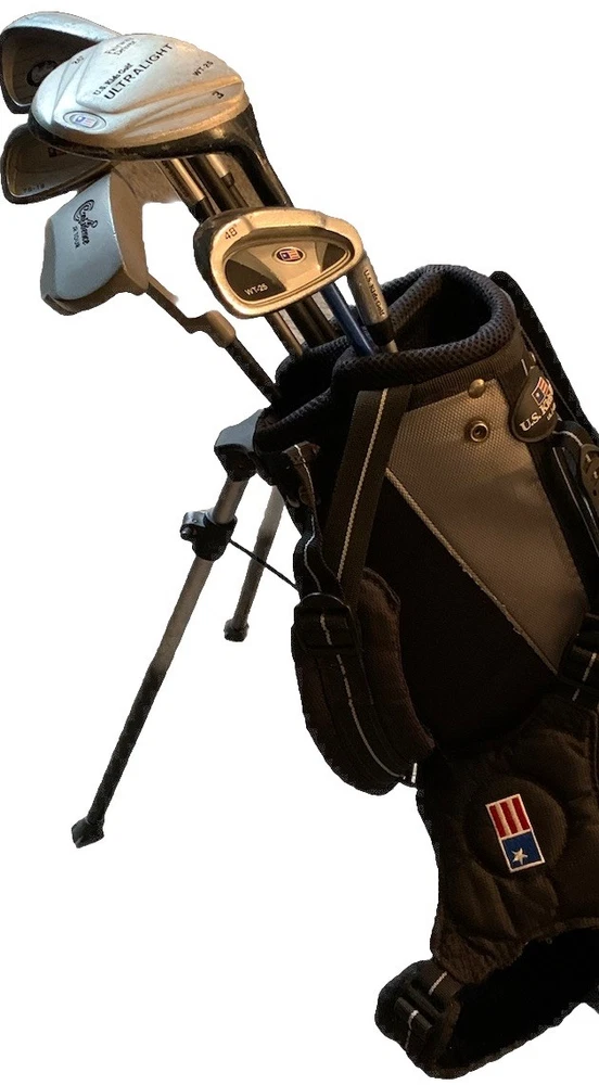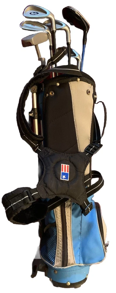 US Kids Gold 5 Piece Set Model: UL- 45 Features & Accents: Bag is Red, Blue White & Black, 3 Sections, 4 Zip Pockets, Carry Strap & Shoulder Strap, Bag has Balls and Tee's. Clubs- 6 Clubs, 4 Irons, 1 Driver, & 1 Putter. Condition. Bag in Very good condition. Clubs in Good Used Condition. Smoke Free Home. Same day shipping if purchased by 3:00 PM, EST. International Sales Ship through Ebay International Shipping Program. Free Returns. We truly try to disclose all information on items we list. However if we miss something, please contact us before leaving negative feedback and allow us to resolve the problem or issue a returns. Your choice. Thank you.