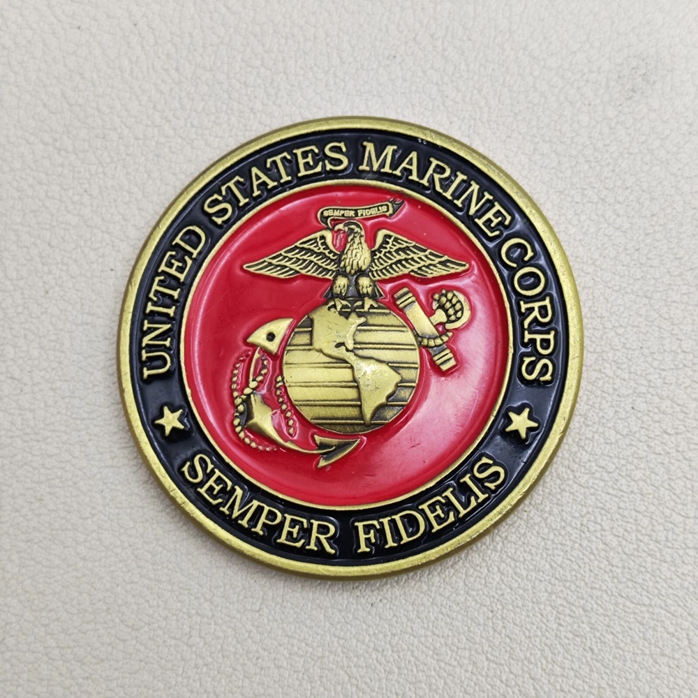TITLE-- US Marine Corps Semper Fidelis Challenge Coin SIZE-- Measures approx. 1.5 inches Used coins have imperfections, please see pictures SHIPPING -- Ships within 5 days of receiving payment. Your purchase will be carefully packaged and you can always check tracking information on eBay Purchase two and more and get a discount on shipping SERVICES -- If you have any questions, you can contact us at any time, we will reply you as soon as possible to solve your problem If you are not satisfied with your purchase for any reason, please contact us before leaving neutral or negative feedback, we will solve the problem for you properly