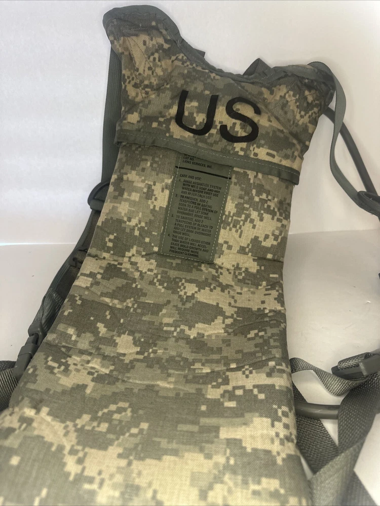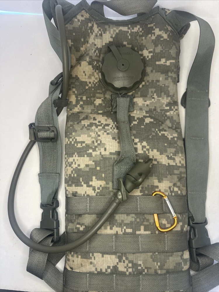 This U.S. Military Issued MOLLE 2-Hydration Carrier is a must-have for any outdoor enthusiast. Designed with a camouflage pattern and made of durable nylon material, this backpack is perfect for hiking and other outdoor activities. The backpack features a toggle closure and a single pocket for easy access to your hydration bladder. With a 3L/100oz capacity, this backpack can hold enough water to keep you hydrated during long hikes. The lightweight design and MOLLE (Modular Lightweight Load-carrying Equipment) feature make it easy to carry and store your essentials. Made in the United States, this backpack is a reliable and practical choice for anyone who enjoys the outdoors.